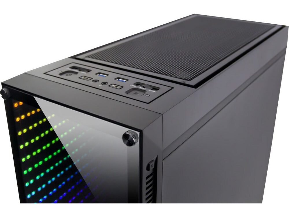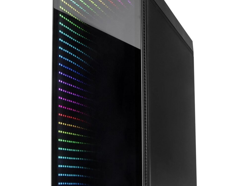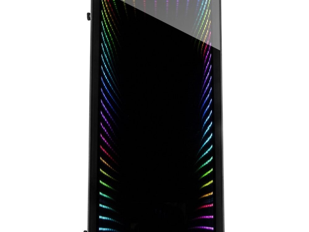 Het geharde glas van het voorpaneel vormt het decor voor de oneindigheidsspiegel en biedt een blik in de diepte van de optische illusie. Een ander hoogtepunt is het 4 mm dikke zijpaneel van gehard glas, dat het decor vormt voor de geïnstalleerde hardware. Met de RGB LED-schakelaar aan de zijkant kun je eenvoudig en gemakkelijk door alle voorgeprogrammeerde effecten en kleuren schakelen. Met de 3-pins RGB header aansluiting voor 5V RGB mainboard controllers en geschikte mainboard software kunnen alle RGB LEDs ook individueel worden aangestuurd (adresseerbare RGB LEDs).