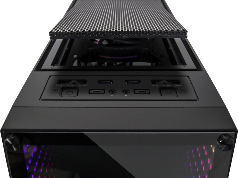 Het gemakkelijk bereikbare bedieningspaneel van de X-908 Infini2 is uitgerust met HD audio-aansluitingen, twee USB 3.0 Type A en twee extra USB 3.0 Type C-poorten. Twee afzonderlijke schakelaars bieden de optie van handmatige ventilatorregeling op drie niveaus (Low, High en Stop). De aan- en uitknop zijn licht verzonken om te voorkomen dat ze per ongeluk in het donker worden bediend.
