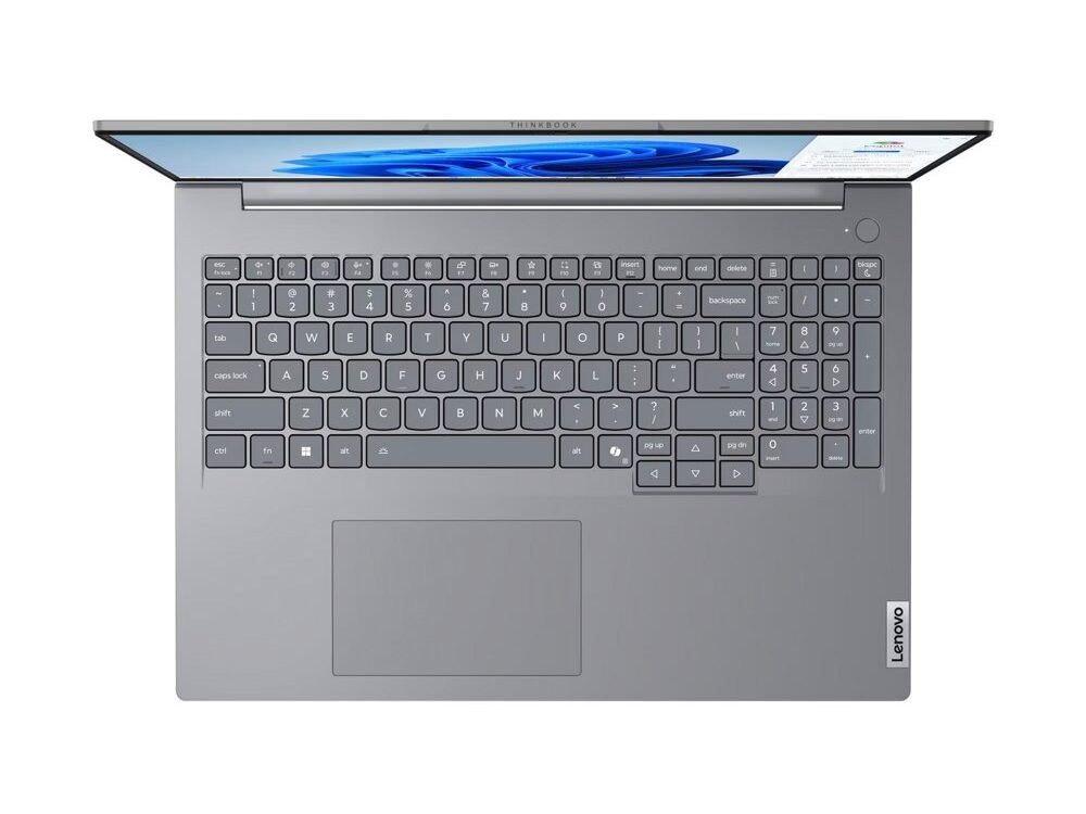 De Lenovo ThinkBook 16 G8 is een laptop die kracht en zakelijke betrouwbaarheid combineert in een modern en stijlvol ontwerp. Het heldere 16 inch WUXGA scherm met een resolutie van 1920×1200 pixels maakt gebruik van IPS technologie en levert scherpe beelden met natuurgetrouwe kleuren en brede kijkhoeken. Dankzij de matte afwerking met anti reflectie coating is het scherm ook comfortabel te gebruiken in fel verlichte omgevingen, terwijl de hoge helderheid ervoor zorgt dat details altijd goed zichtbaar blijven.