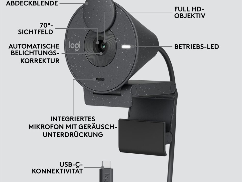 Met een resolutie van 1920 x 1080 pixels en een Full HD-camera biedt de Brio 300 heldere beelden en een uitstekende videokwaliteit. Dankzij de handige USB-C-interface is het aansluiten een fluitje van een cent.