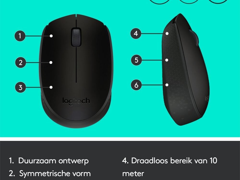 De Logitech M171 is een draadloze optische muis die speciaal is ontworpen voor dagelijks gebruik. Deze ambidextrous muis is geschikt voor zowel rechts- als linkshandige gebruikers en biedt een comfortabele grip en precisiebewegingen.