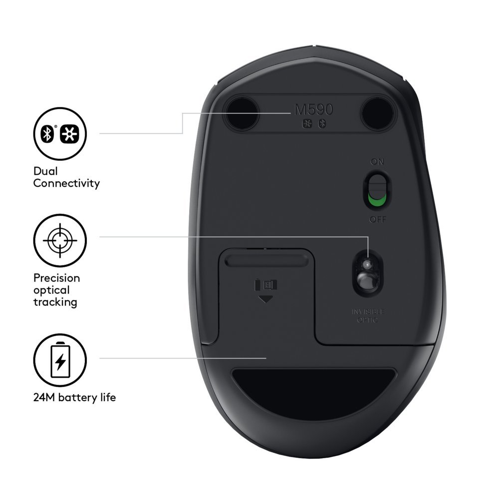 Met hetzelfde klikgevoel maar dan 90% stiller dan reguliere muizen kunnen u en de mensen om u heen met de M590 van een stillere ervaring genieten. De voetjes van de M590 zijn bovendien zijn van een hoogwaardig materiaal gemaakt en met het rubberen wiel gaat het glijden en scrollen geluidloos.
