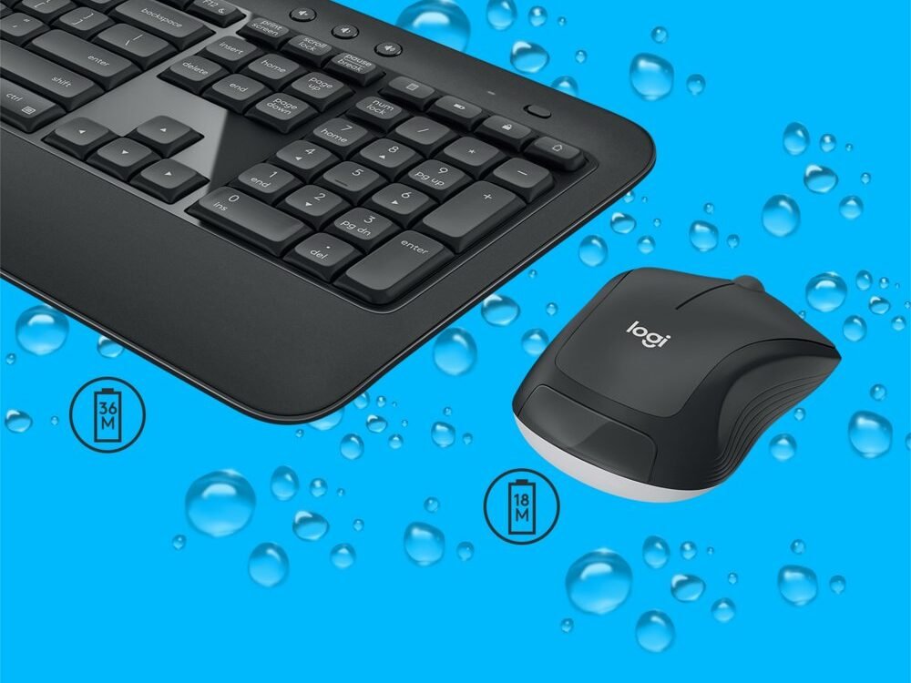 Jouw toetsenbord heeft 36 maanden lang geen nieuwe batterijen nodig en de muis gaat 18 maanden mee. Het toetsenbord is morsbestendig (tot 60 ml vloeistof) en de slijtvaste belettering van de toetsen zorgt dat deze niet snel zullen vervagen.