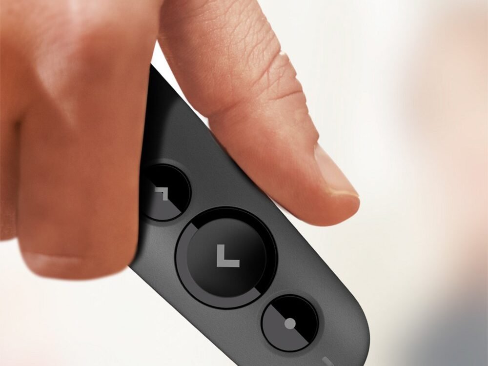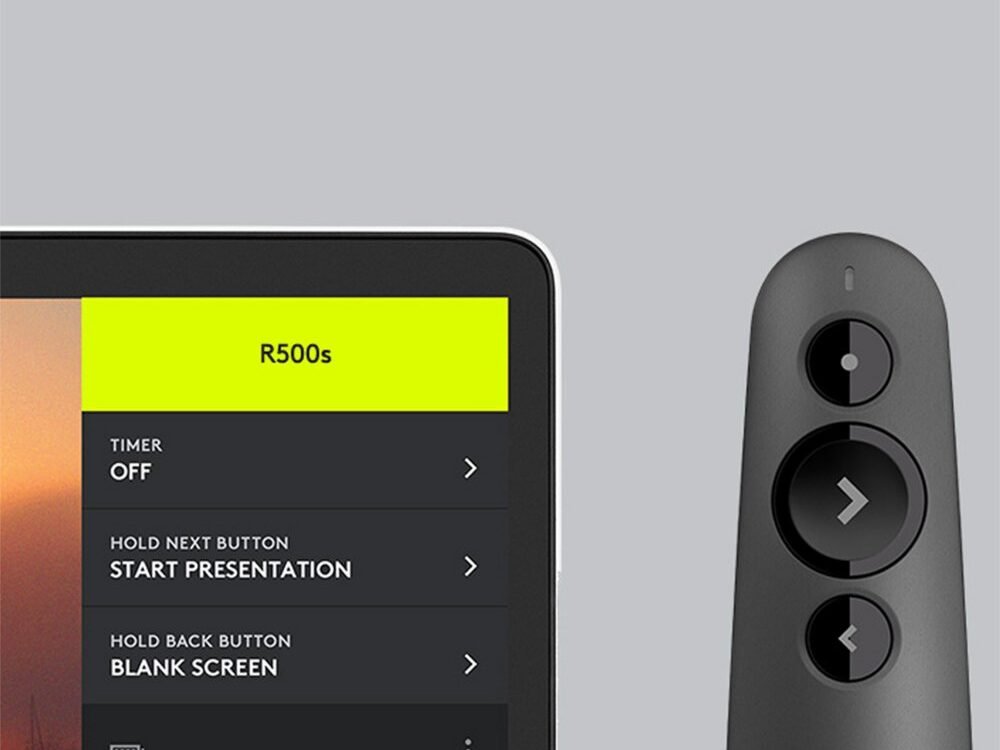 Maak kennis met de R500, een plug-and-play presentatieafstandsbediening waarmee je vanaf maximaal 20 meter afstand door dia’s en laserpunten kunt navigeren. Geef jouw presentatie met gemak en vertrouwen dankzij het onmiskenbare ontwerp met drie knoppen en de comfortabele, stevige pasvorm van de R500. De R500 is geoptimaliseerd voor de meeste apparaten en populaire presentatiesoftware – en je kunt knoppen aanpassen, de levensduur van de batterij controleren en een timer op het scherm instellen in de Logitech Presentation App.