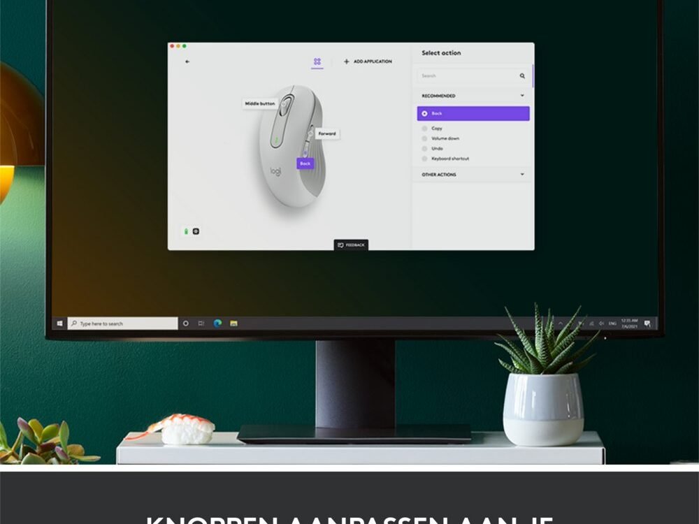 Stel de zijknoppen eenvoudig met Logitech Options+, beschikbaar op Windows en macOS, in op je favoriete snelkoppelingen, zoals Vorige/Volgende of Kopiëren/Plakken.