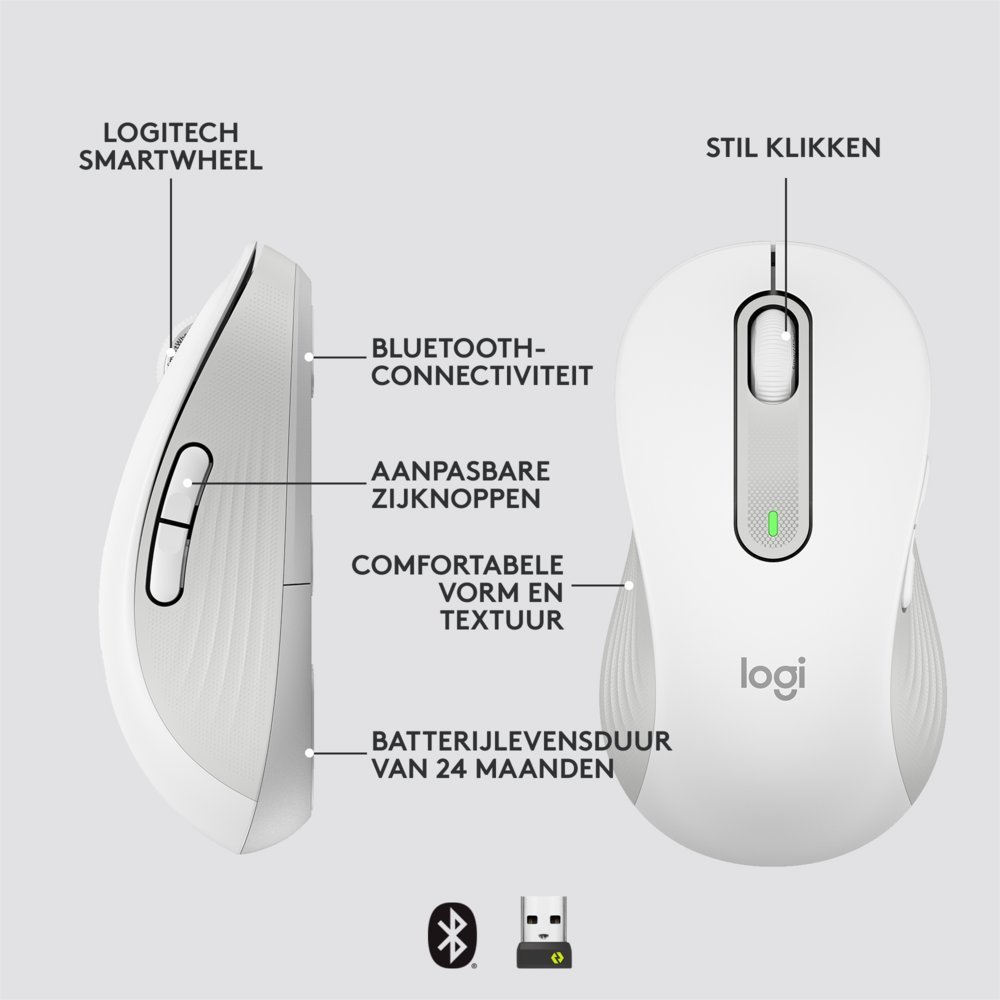 Kies de Signature M650 die het beste bij je past. De M650 is geschikt voor kleine tot middelgrote handen, M650 L voor grote handen en M650 L Left voor linkshandigen. Weet je niet welke muis je moet kiezen? Bekijk ons advies voor het juiste formaat.