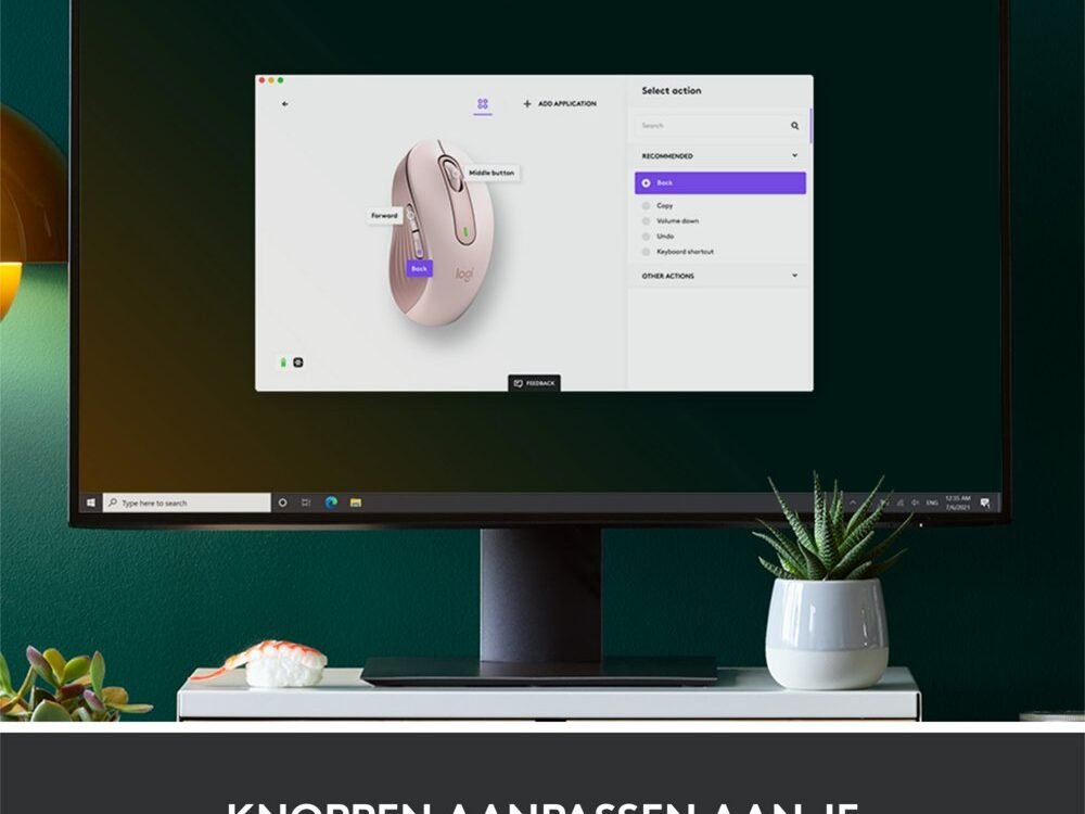 Stel de zijknoppen eenvoudig met Logitech Options+, beschikbaar op Windows en macOS, in op je favoriete snelkoppelingen, zoals Vorige/Volgende of Kopiëren/Plakken.