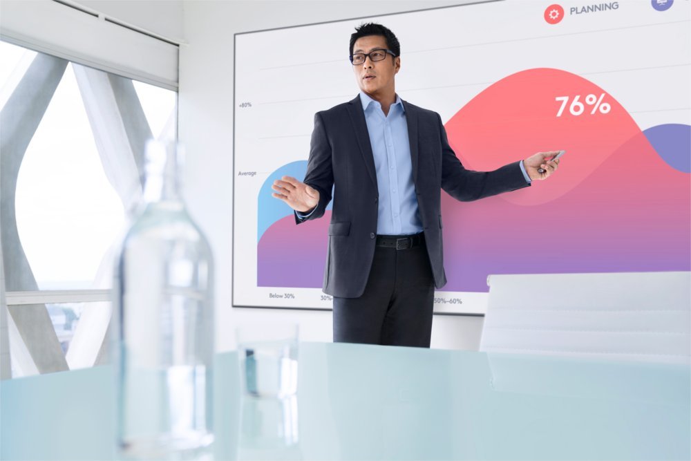 Een compleet nieuwe standaard in presentaties. De bediening combineert een minimalistisch ontwerp met geavanceerde functionaliteit en is even gebruiksvriendelijk als indrukwekkend.