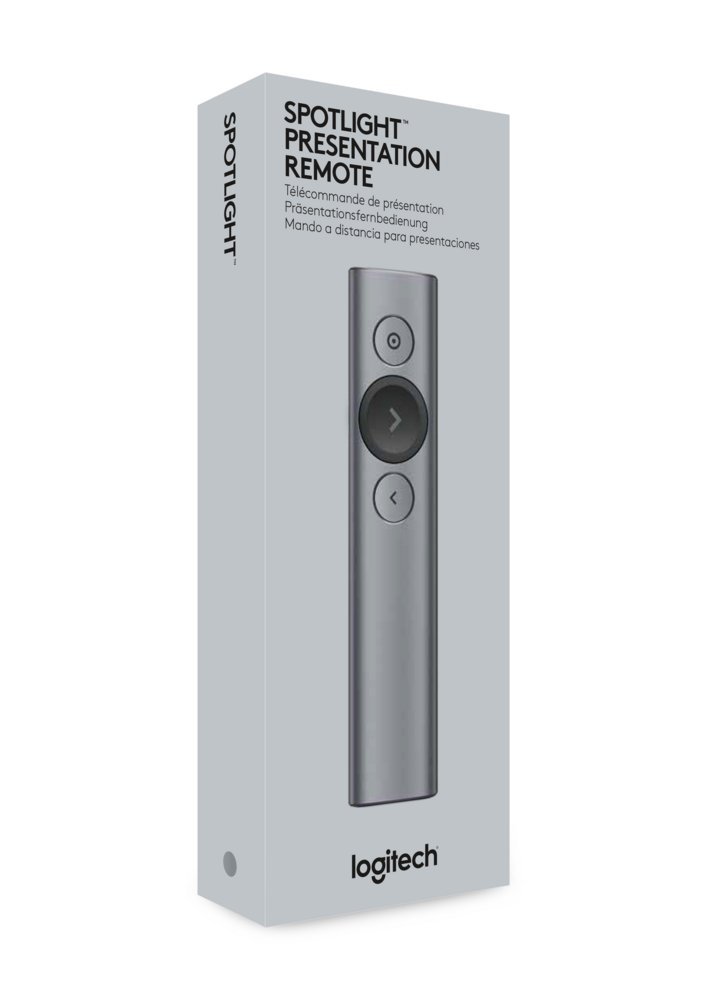 Spotlight brengt onmiddellijk een verbinding tot stand via een USB-ontvanger of Bluetooth® Smart. Spotlight is plug-and-play op de meeste platforms en compatibe met alle populaire presentatie-apps. Bovendien is het apparaat volledig oplaadbaar en heeft het een werkingsbereik van 30 meter.