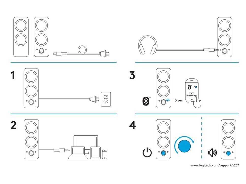 Luister draadloos muziek via de Bluetooth® functie, zoals je smartphone of tablet. Daarnaast kun je één apparaat bedraad verbinden met de Z207, zoals bijvoorbeeld je computer.