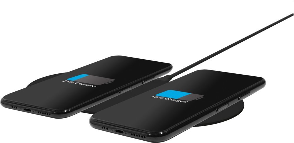 Ontdek de Mobiparts Dual Fast Wireless Charger, een universele draadloze lader die geschikt is voor het gelijktijdig opladen van twee toestellen. Deze lader ondersteunt supersnel laden en biedt ruimte voor twee smartphones, headsets of andere draadloos oplaadbare apparaten (let op: niet geschikt voor smartwatches). De pad wordt via een USB-C aansluiting van stroom voorzien. Even een korte pauze op deze lader en jouw toestel is snel weer volledig opgeladen.