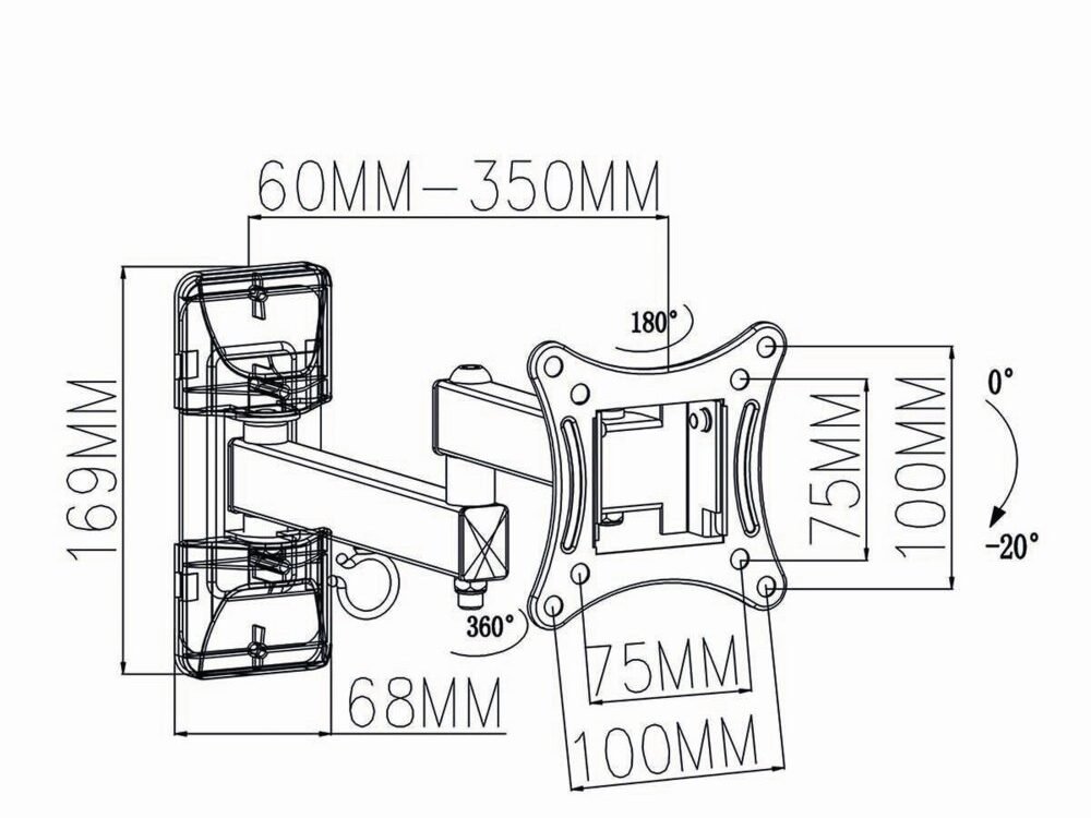 Maximale gewichtscapaciteit: 15 kg, Minimale schermgrootte: 33 cm (13″), Maximale schermgrootte: 68,6 cm (27″), Montage interface compatibiliteit (min): 75 x 75 mm, Montage interface compatibiliteit (max): 100 x 100 mm.