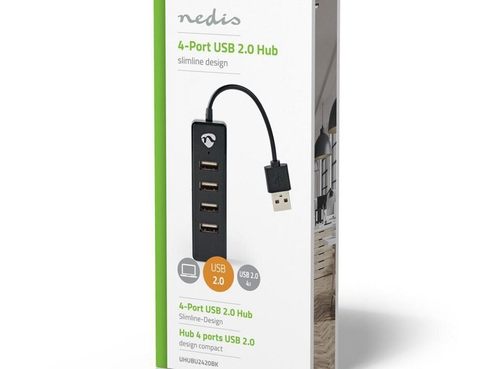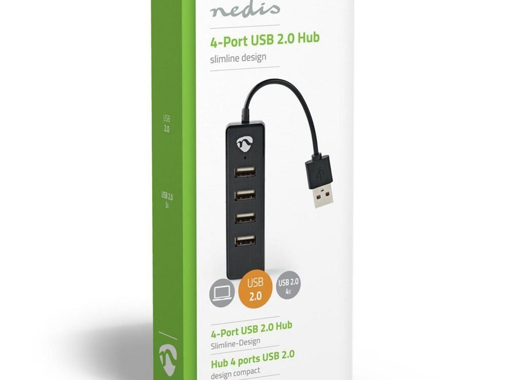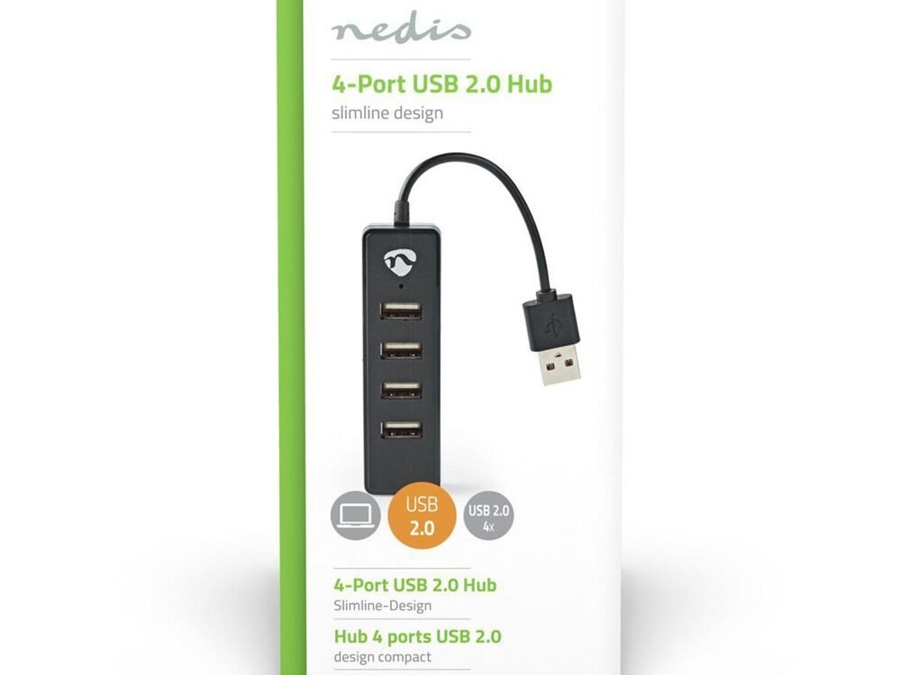 Sluit deze Nedis 4-poorts USB-hub aan op je PC of notebook en breid deze uit met extra USB-poorten.