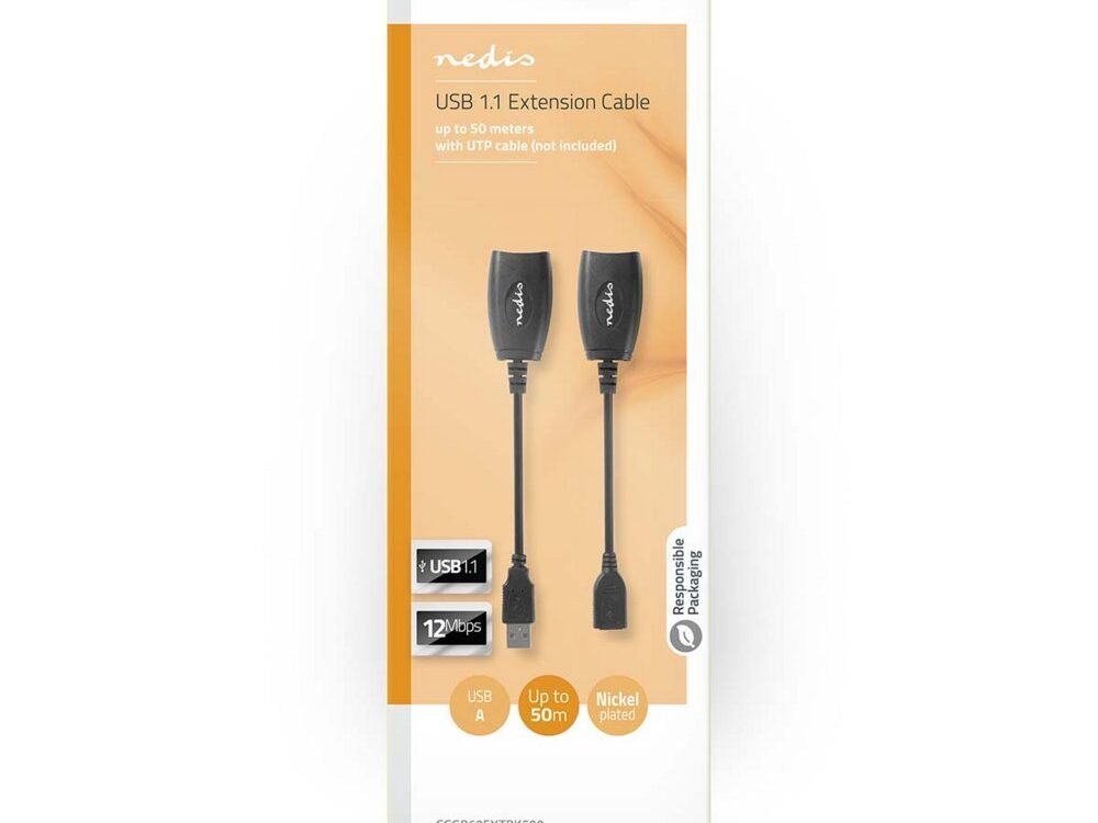 Verleng een USB-kabel zonder een extra voedingsadapter te hoeven aansluiten. Sluit deze USB 1.1 verlengingsadapter aan op je pc en gebruik een UTP-patchkabel om een extra bereik van maximaal 50 meter te creëren. Ideaal om een printer aan te sluiten of een webcam te gebruiken als beveiligingscamera.
