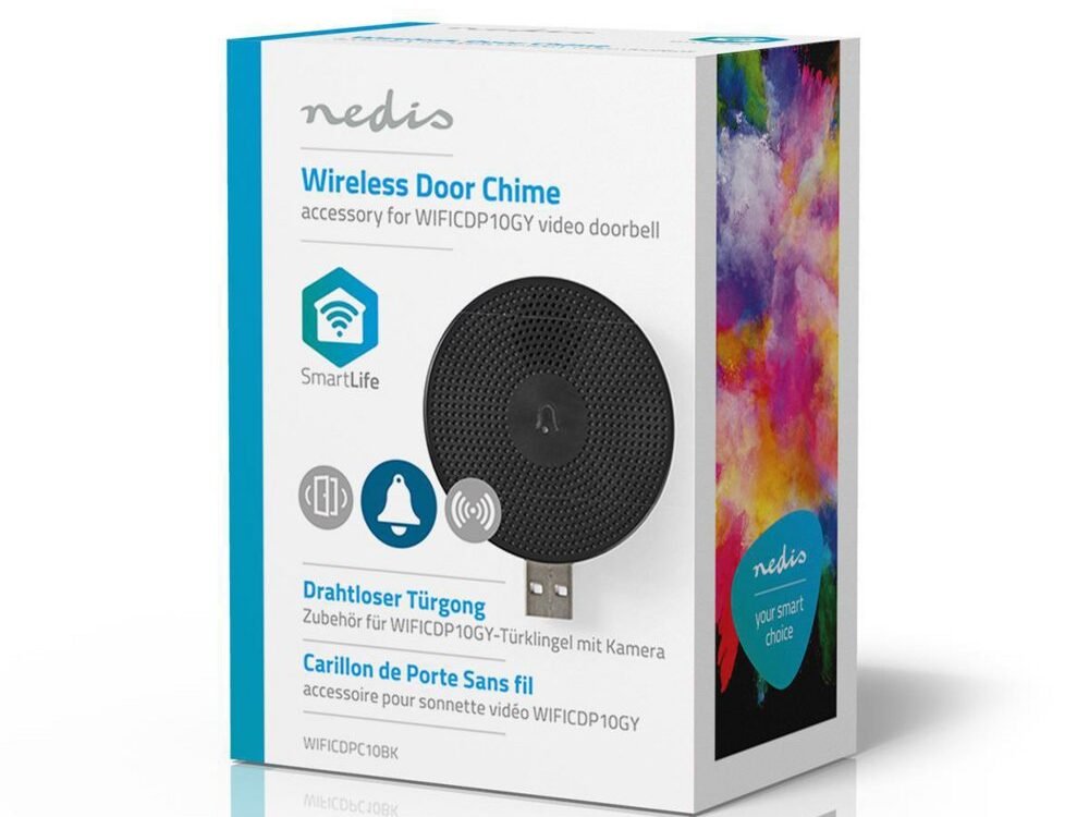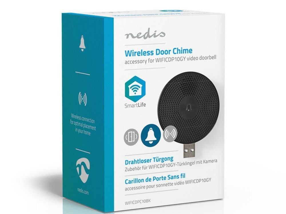 Breid jouw Nedis® slimme videodeurbel uit met deze draadloze deurbel. Zo weet je altijd dat er iemand voor de deur staat, ook als je jouw smartphone niet binnen handbereik heeft of als deze is uitgeschakeld. Je hoeft hem alleen maar in een USB-poort te steken en de melodie en het volume te selecteren met de SmartLife app. Maakt draadloos verbinding met de deurbel voor maximale flexibiliteit.