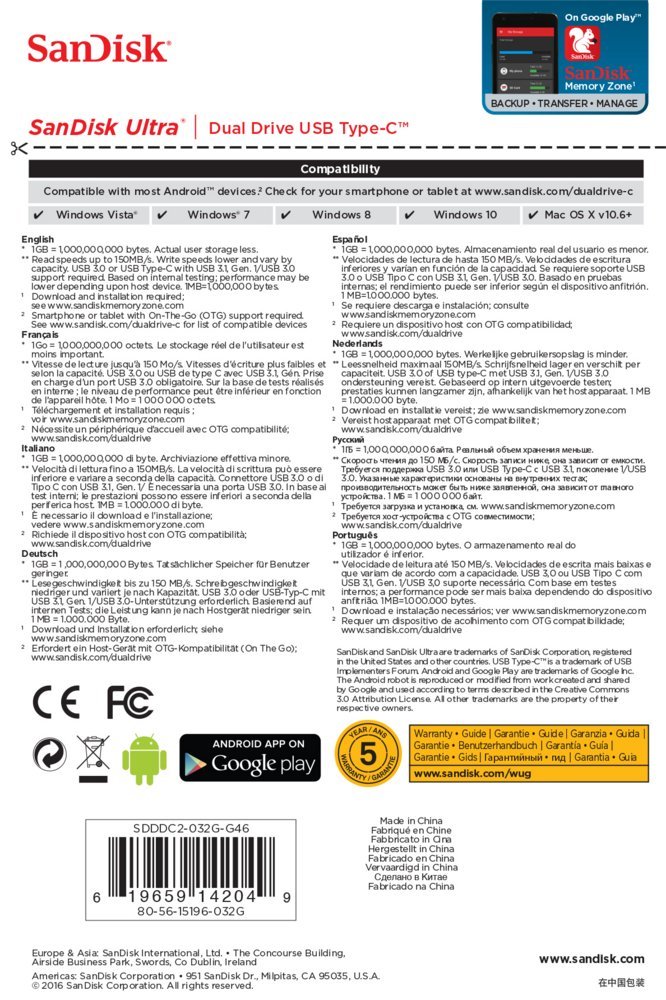 Maak eenvoudig ruimte vrij op je smartphone of verplaats snel bestanden tussen apparaten met USB 3.1-snelheden tot 150MB/s. Met een omkeerbare USB Type-C-connector en een traditionele USB-connector kun je met de SanDisk Ultra Dual Drive USB Type-C snel en eenvoudig bestanden overdragen tussen smartphones, tablets en computers. Bovendien helpt de SanDisk Memory Zone-app voor Android (beschikbaar op Google Play) je om het geheugen van je apparaat en je content te beheren. De SanDisk Ultra Dual Drive USB Type-C is de perfecte schakel tussen je nieuwe USB Type-C-apparaat en je apparaten met traditionele USB-poorten.