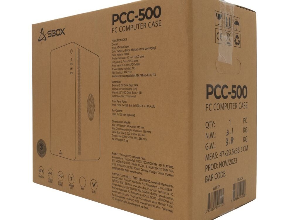 Met afmetingen van ongeveer 330 bij 185 bij 410 millimeter en een gewicht van circa drie kilogram is de SBOX PCC-500 compact, maar toch ruim genoeg om moderne componenten comfortabel te huisvesten. Het ontwerp is gericht op eenvoud, efficiëntie en betrouwbaarheid, met voldoende ruimte voor kabelmanagement en ventilatie. De combinatie van flexibiliteit, degelijkheid en een minimalistisch ontwerp maakt deze behuizing een uitstekende keuze voor iedereen die een compacte computer wil bouwen zonder concessies te doen aan uitbreidbaarheid of functionaliteit.