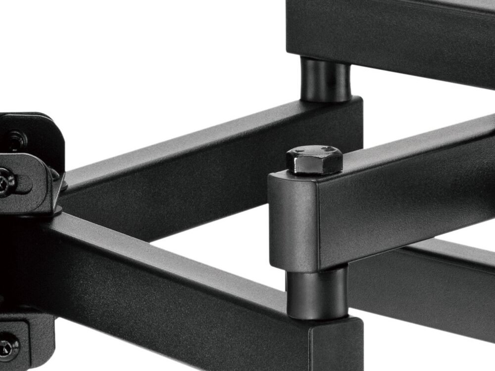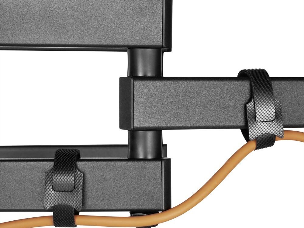 De beugel heeft een afneembare VESA-plaat, waardoor de installatie en montage van de televisie eenvoudiger en sneller verloopt, en een integraal kabelbeheersysteem dat zorgt voor een opgeruimde en professionele uitstraling van de kijkopstelling. Het ontwerp is geschikt voor zowel platte als gebogen schermen, waardoor hij flexibel inzetbaar is in uiteenlopende situaties.