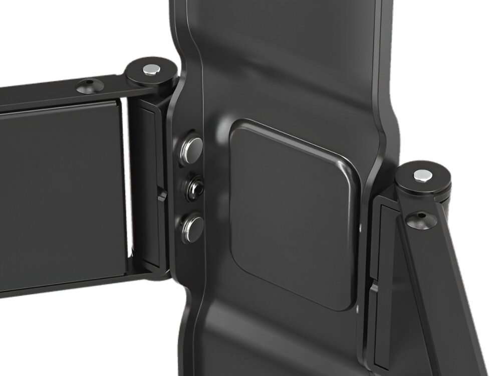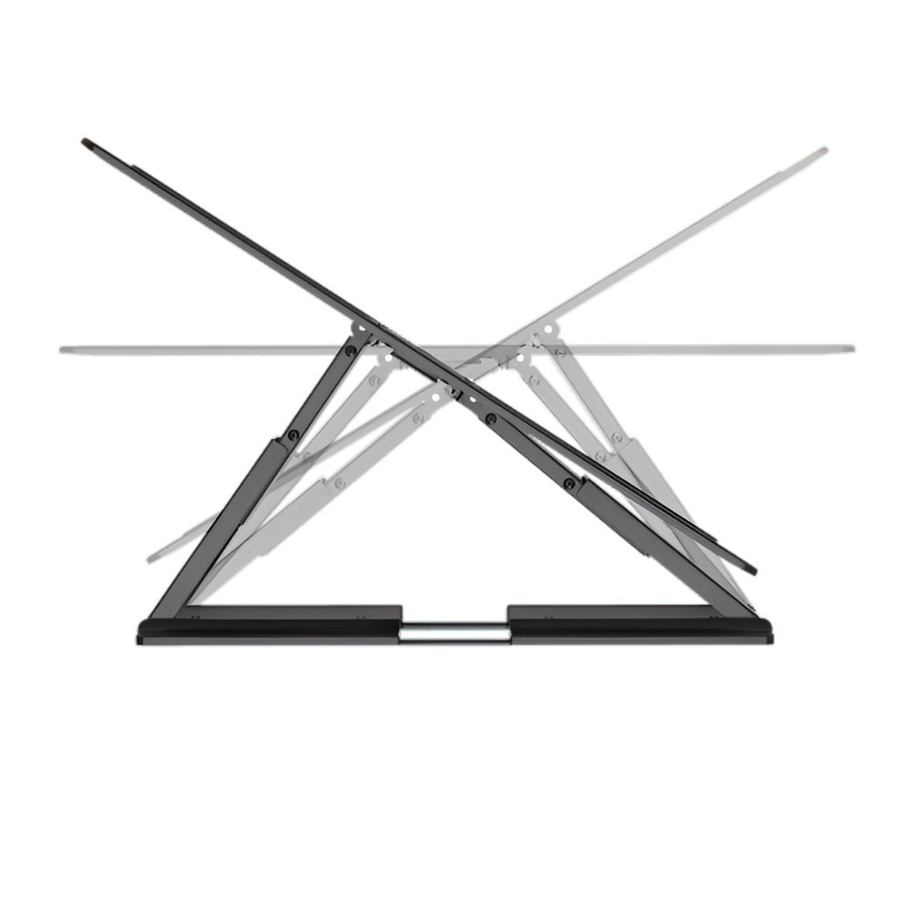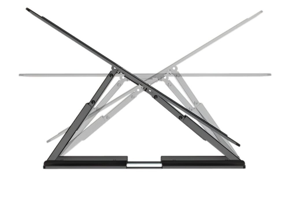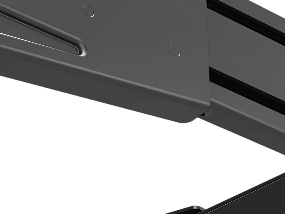 De beugel is vervaardigd uit hoogwaardig staal en kunststof met een zwarte poedercoating, wat zorgt voor een duurzame en stijlvolle afwerking. De afneembare VESA-plaat maakt installatie eenvoudig en snel.