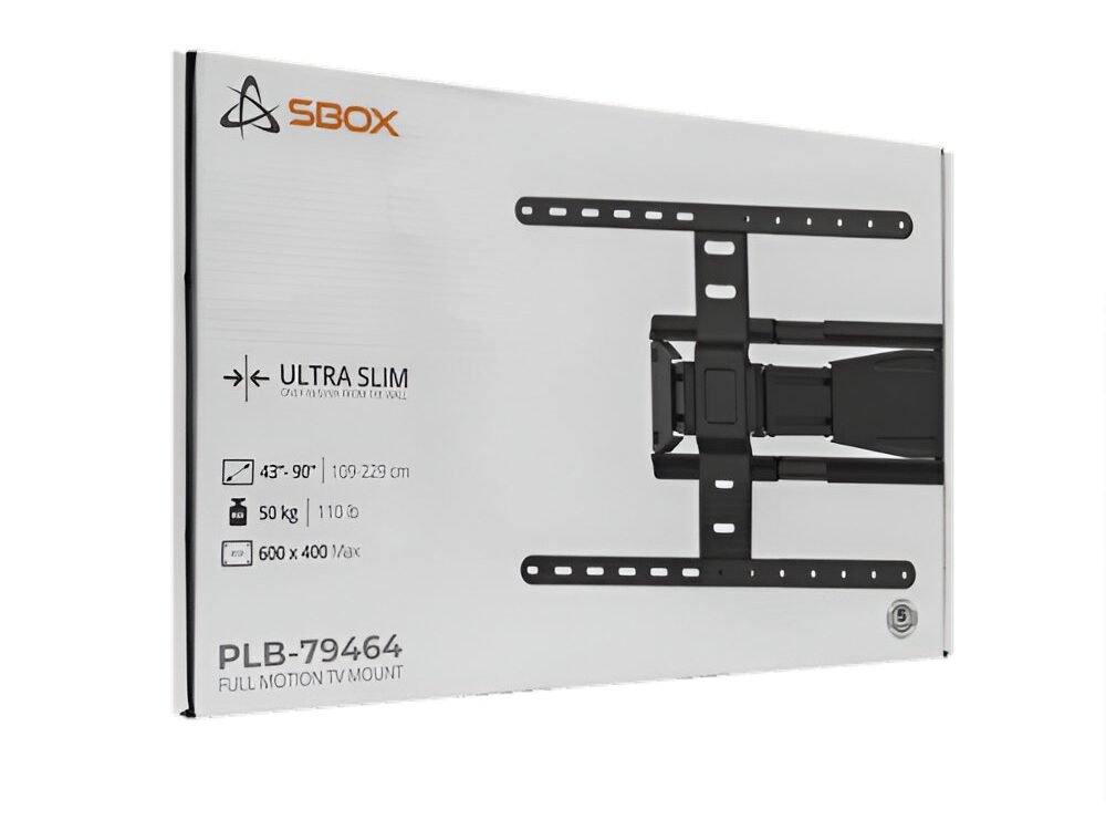 De SBOX PLB-79464 is een veelzijdige en robuuste tv-muurbeugel, ontworpen voor schermformaten van 43 tot 90 inch en een maximaal gewicht van 50 kg. Dankzij de brede VESA-compatibiliteit van 100×200 mm tot 600×400 mm is deze beugel geschikt voor een groot aantal tv-modellen, inclusief gebogen schermen.