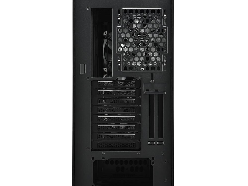 Als het gaat om voldoende ruimte voor hoogwaardige PC-opstellingen, maakt de CA300T geen compromissen. Het interieur is ruim en heeft een goed doordachte indeling om complexe systemen te ondersteunen. Grote grafische kaarten met een lengte tot 42,5 cm, voedingen tot 24 cm lang en CPU-koelers met een hoogte van 16,5 cm vinden allemaal gemakkelijk hun plaats binnenin. Bovendien kunnen er tot zeven 2,5″ of vier 3,5″ drives worden geïnstalleerd in de solide behuizing.