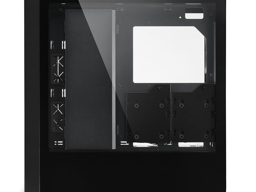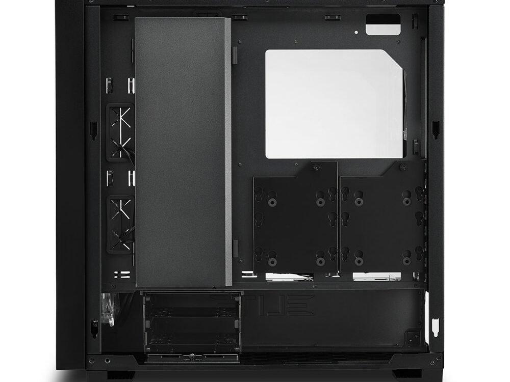 Hardware die is ingebouwd in een ELITE SHARK-behuizing verdient het om gezien te worden. Daarom heeft Sharkoon de CA300T uitgerust met twee zijpanelen van gehard glas. Het linker zijpaneel biedt volledig inzicht in het interieur van de behuizing, zodat geïnstalleerde componenten perfect kunnen worden tentoongesteld. Met het rechter zijpaneel is het onderste gebied van het geharde glas zwart getint, zodat de componenten binnenin de voedingstunnel niet afleiden van het algehele visuele effect van de behuizing. SSD’s met RGB-elementen of imposante harde schijven komen hier volledig tot hun recht. Kabelwarboel maakt geen kans: bekabeling kan eenvoudig verdwijnen in een ruim bekabelingscompartiment, dat kan worden geopend en gesloten, en achter een beweegbare kabelafdekking. Om onnodige elementen uit het zicht te houden, zijn de zijpanelen voorzien van schroevenloze bevestiging aan hun oppervlak of aan de achterkant van de behuizing en kunnen ze snel en gemakkelijk aan het behuizingsframe worden bevestigd met een paar eenvoudige stappen.