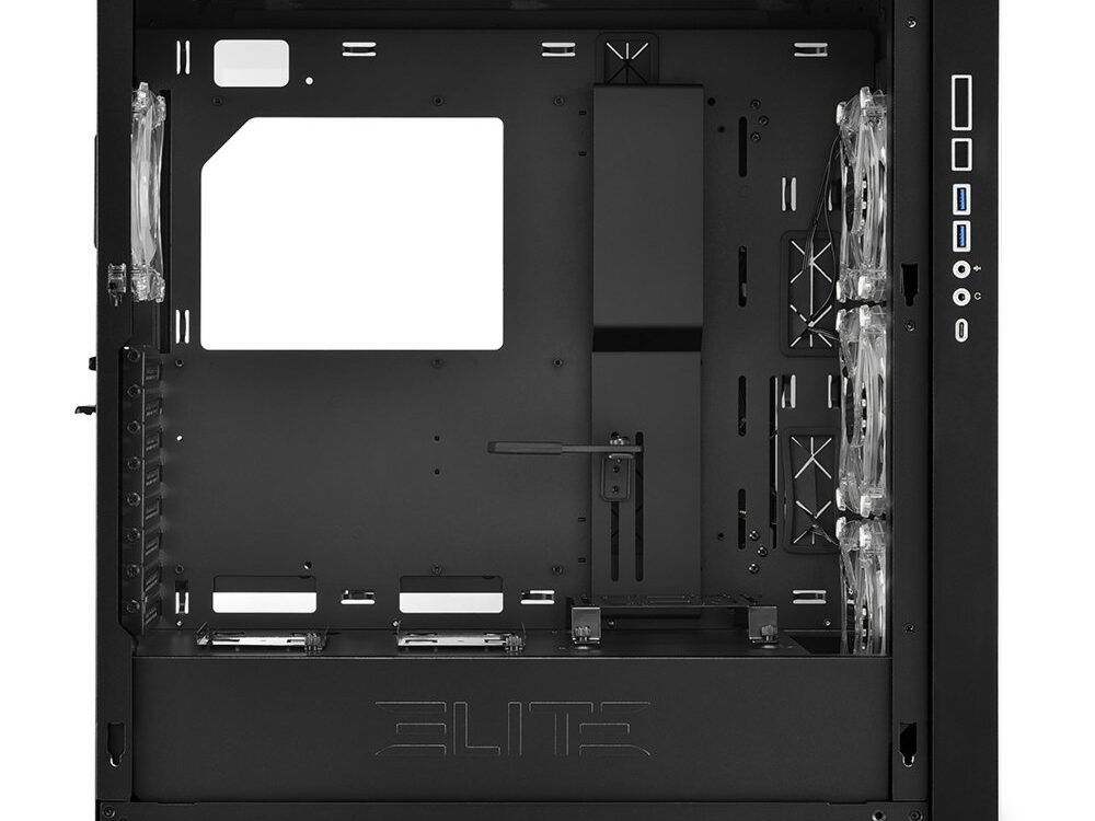 Het expressieve frontpaneel met zijn patroon van geometrisch ontworpen openingen geeft de PC-behuizing een futuristische stijl en maakt van de CA300T een directe blikvanger. Bovendien completeert het gebruik van hoogwaardige materialen de indruk van elegantie: het bovenpaneel is vervaardigd van massief metaal en het stalen frontpaneel is geplaatst in een frame van diamantgesneden aluminium. De drie RGB-LED-ventilatoren zorgen voor kleurrijke accenten en schijnen door het patroon van het frontpaneel. Een extra RGB LED-ventilator aan de achterkant voegt meer verlichting toe aan het interieur van de behuizing. Met behulp van de software van compatibele moederborden met een 5V-D-coded-G of 5V-D-G pinconfiguratie kunnen de RGB LED’s in alle ventilatoren worden aangepast om unieke verlichtingseffecten weer te geven.