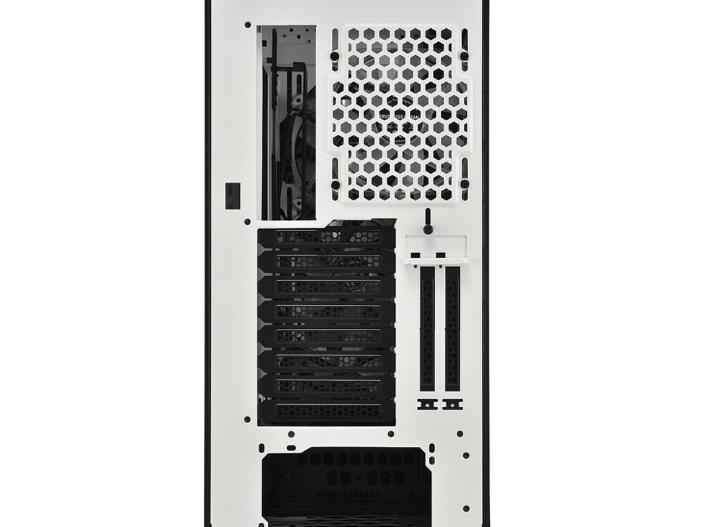 Grote, Stevige Toren met Veel Ruimte. Als het gaat om voldoende ruimte voor hoogwaardige PC-configuraties, maakt de CA300T geen compromissen. Het interieur is ruim en heeft een goed doordachte indeling om complexe systemen te ondersteunen. Grote grafische kaarten met een lengte tot 42,5 cm, voedingen tot 24 cm lang en CPU-koelers met een hoogte van 16,5 cm vinden allemaal moeiteloos plaats. Daarnaast kunnen er tot zeven 2,5″ of vier 3,5″ drives in de solide behuizing worden geïnstalleerd.