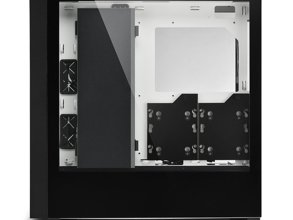 Stijlvolle Showcase voor Premium Componenten. Hardware die is ingebouwd in een ELITE SHARK-behuizing verdient het om gezien te worden. Daarom hebben we de CA300T uitgerust met twee zijpanelen van gehard glas. Het linker zijpaneel biedt volledig zicht op het interieur van de behuizing, zodat geïnstalleerde componenten perfect kunnen worden tentoongesteld. Met het rechter zijpaneel is het onderste gedeelte van het geharde glas zwart getint, zodat de componenten binnenin de voedingstunnel niet afleiden van het algehele visuele effect van de behuizing. SSD’s met RGB-elementen of imposante HDD’s komen hier volledig tot hun recht. Kabelwarboel krijgt geen kans: bekabeling kan eenvoudig verdwijnen in een ruim kabelcompartiment, dat kan worden geopend en gesloten, en achter een beweegbare kabelafdekking. Om geen onnodige elementen in het zicht te hebben, zijn de zijpanelen zonder schroeven op hun oppervlak of aan de achterkant van de behuizing gemonteerd en kunnen ze snel en gemakkelijk aan het frame van de behuizing worden bevestigd in een paar eenvoudige stappen.