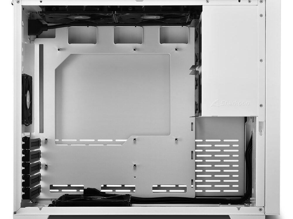Met de MS-Z1000 presenteert Sharkoon een micro-ATX behuizing die een stijlvol ontwerp combineert met slimme functionaliteit. Het stalen voorpaneel heeft niet alleen een unieke uitstraling, maar zorgt ook voor optimale luchtdoorlaatbaarheid om grote, high-performance componenten te koelen. Het getemperde glas van het zijpaneel kan naast de voedingstunnel worden geplaatst, die aan de bovenkant van de behuizing is geplaatst. Als alternatief kan het getemperde glas aan de onderzijde worden gepositioneerd om geselecteerde componenten optimaal weer te geven.