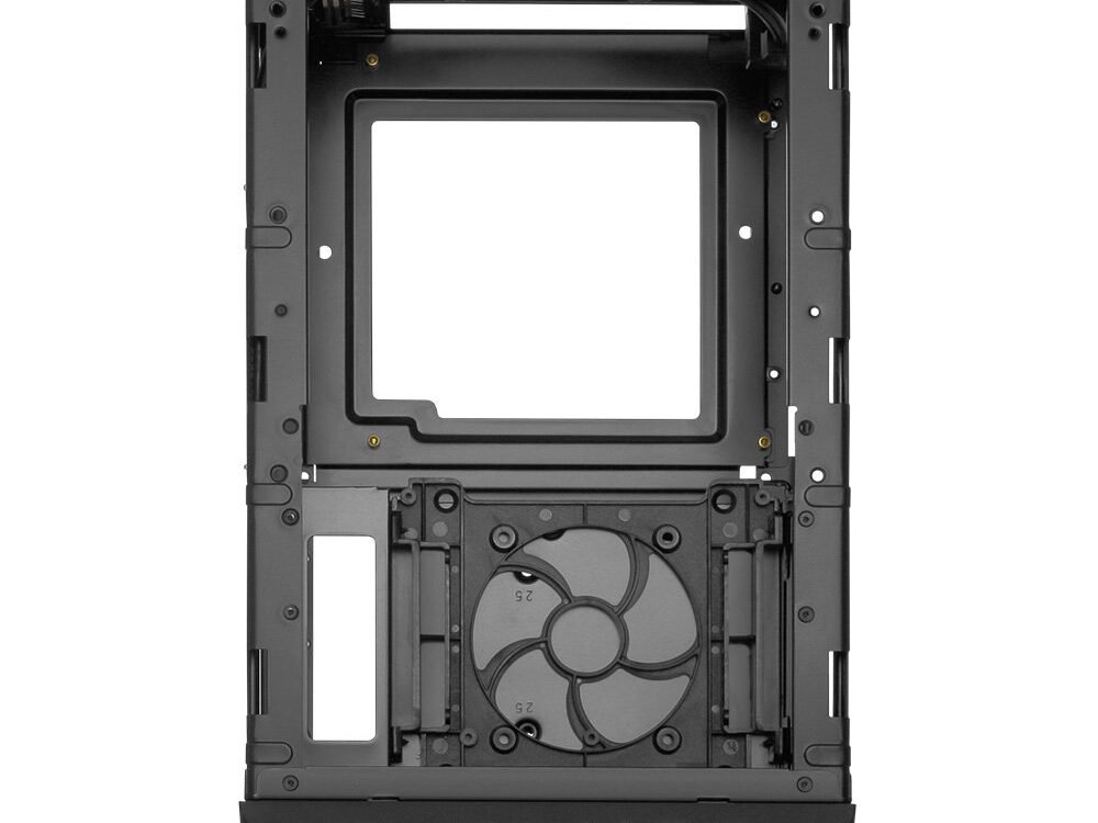 De QB ONE biedt ruimte voor het installeren van een krachtige dual-slot grafische kaart met een maximale lengte van 31,5 cm. Daarnaast kunnen er tot twee 3,5-inch harde schijven of twee 2,5-inch HDD/SSD’s worden ingebouwd. Een extra 2,5-inch HDD/SSD kan aan de achterkant van de behuizing worden gemonteerd in plaats van een 80-mm ventilator. CPU-koelers kunnen met een maximale hoogte van 15 cm worden geplaatst. Voor het gemakkelijk monteren van de koeler heeft de behuizing een speciale installatiesleuf. Handige vleugelschroeven vereenvoudigen bovendien het openen en sluiten van de behuizing.