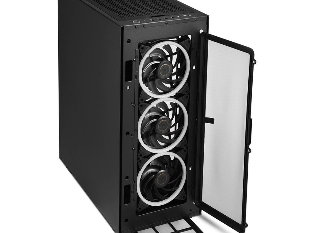 Voor iedereen met een veeleisend gaming systeem is goede luchtstroom essentieel, en de REV300 is daarvoor perfect uitgerust. Zeven ventilatoren zijn al vooraf geïnstalleerd, waardoor gebruikers direct kunnen profiteren van maximale koeling. Een mesh rooster strekt zich uit over het gehele voorpaneel, waardoor er voldoende lucht wordt aangevoerd door drie 140 mm RGB LED ventilatoren. Drie extra 120 mm RGB LED ventilatoren zijn geïnstalleerd aan de achterkant. Indien waterkoeling nodig is, kunnen er tegelijkertijd twee radiatoren worden geïnstalleerd binnen de REV300. Een radiator van 360 mm kan aan de achterkant worden geïnstalleerd, terwijl er ruimte is voor een gigantische radiator van 420 mm achter het voorpaneel.