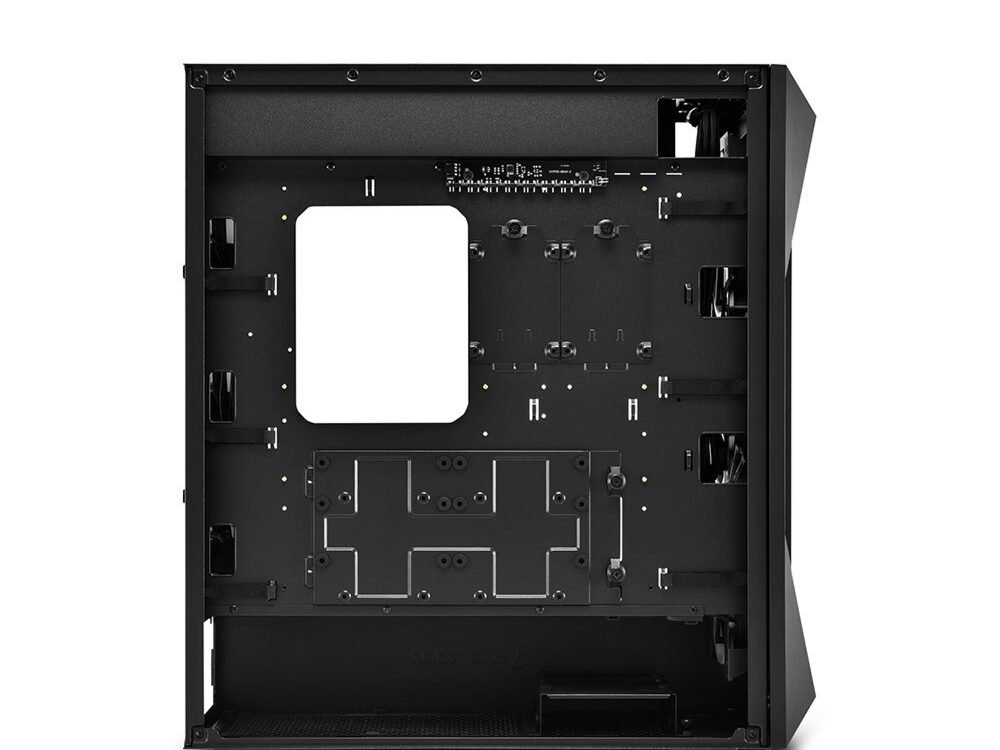 De REV300 draait traditioneel behuizingsontwerp om met zijn REV-serie. De behuizing is voorzien van een gehard glazen zijpaneel aan de rechterkant, perfect voor gebruikers die hun krachtige gaming systeem links willen plaatsen. Een REVolutionair aspect is de installatie van alle componenten rond een 90-graden gedraaid moederbord. De kabels en aansluitingen van het moederbord worden geleid naar een speciaal kabelcompartiment bovenop de behuizing. Het I/O-paneel biedt vier conventionele USB-aansluitingen en een poort voor USB Type-C apparaten.