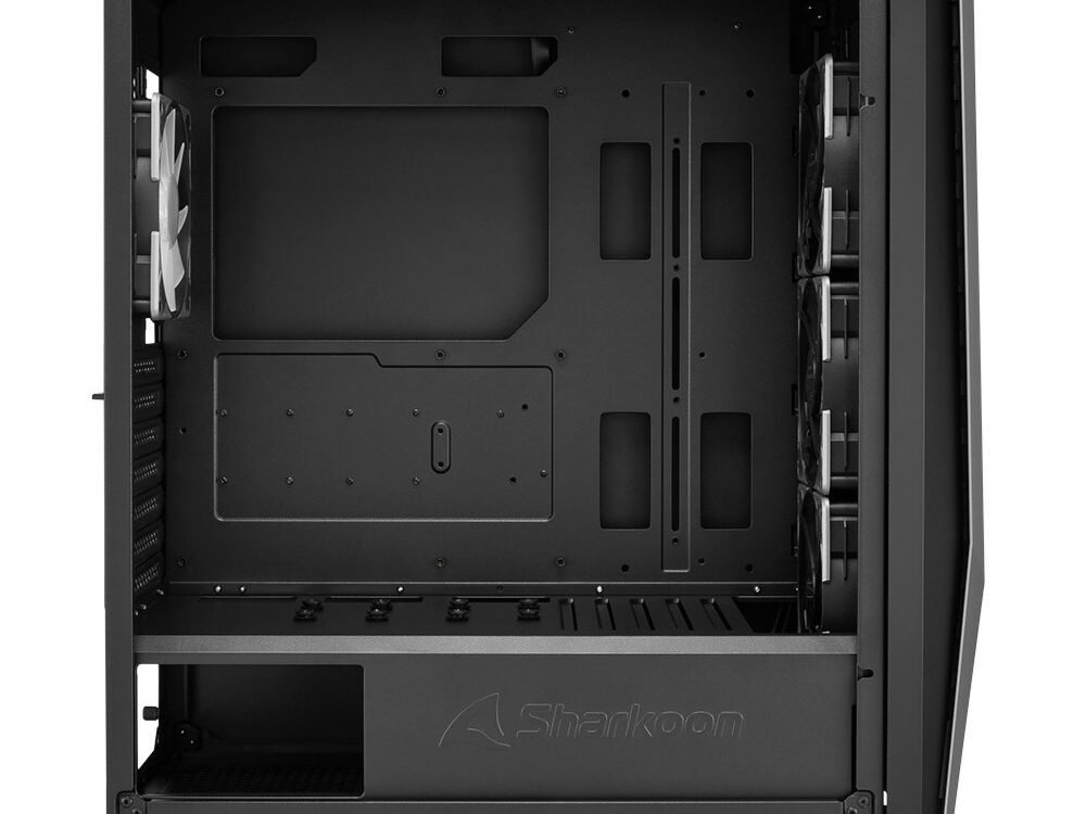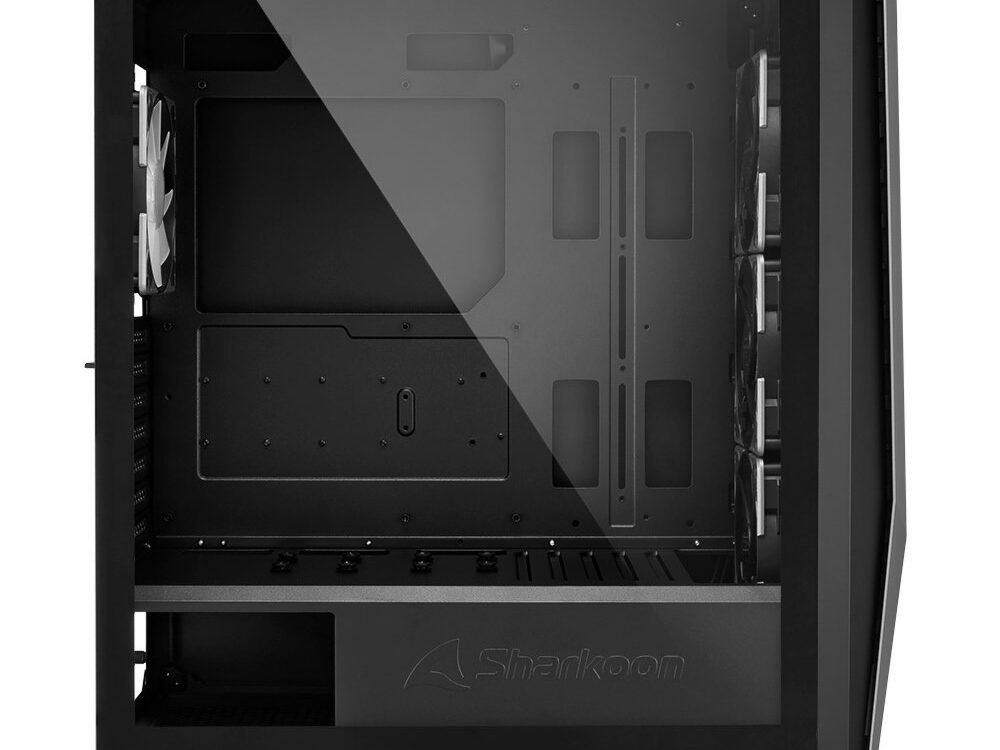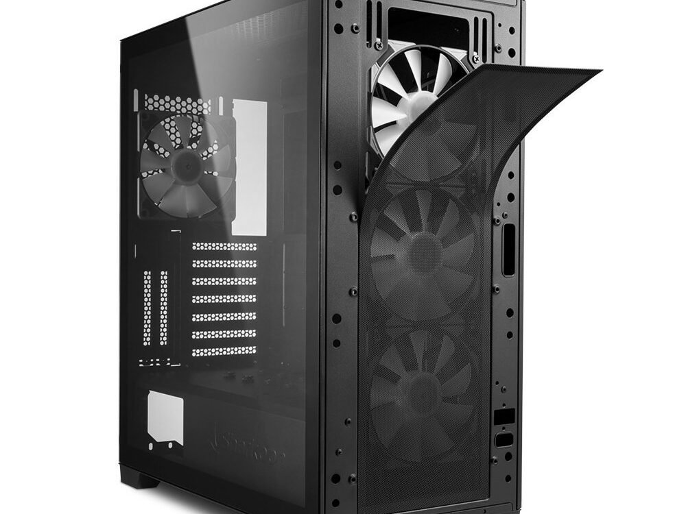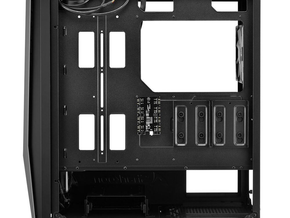 Veel te Zien. Dankzij een venster aan de onder linkerkant van de behuizing blijft de voedingseenheid in het zicht. Bovendien biedt het gehele zijpaneel van gehard glas zelf een breed zicht op het interieur van de behuizing. Vooral RGB-verlichte componenten komen goed tot hun recht.