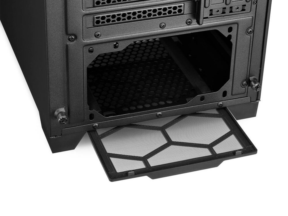 Enorme Hoeveelheid Ruimte voor Hardware. Het ruime interieur van de TG7M RGB biedt voldoende ruimte voor grote componenten. Een voedingseenheid met een lengte tot 22 cm kan eenvoudig worden geïnstalleerd op het onderpaneel aan de achterkant van de behuizing. Er is ook ruimte voor een grafische kaart tot 38 cm, die ook verticaal kan worden gemonteerd met behulp van de optionele Vertical Graphics Card Kit.