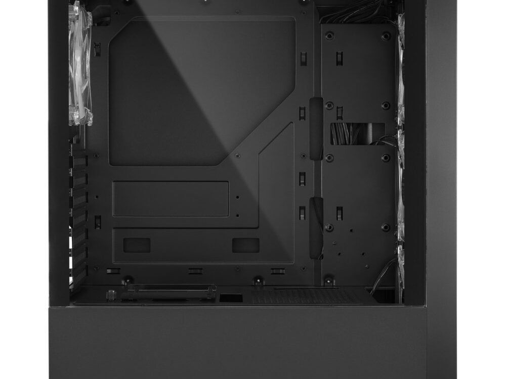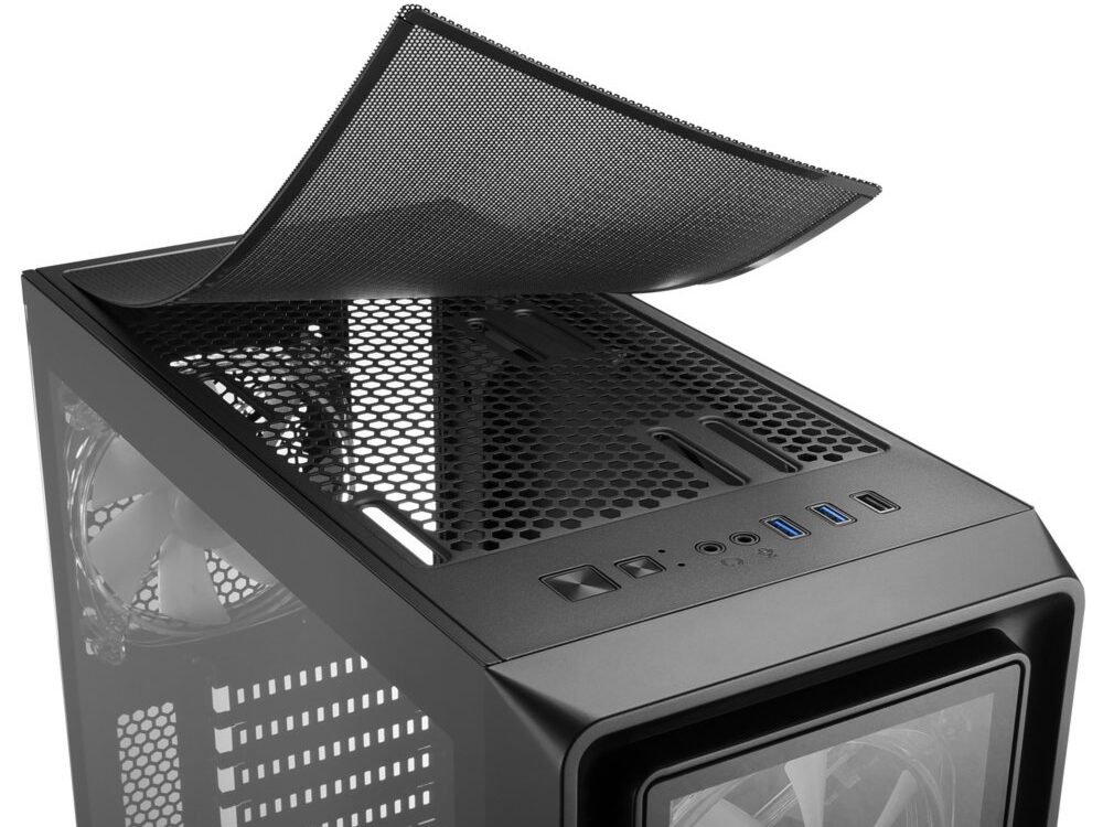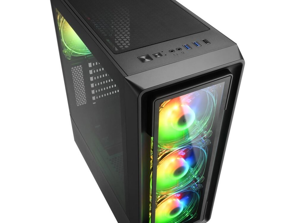 Stralend Voorpaneel. Achter het voorpaneel van gehard glas zorgen drie 120 mm RGB LED-ventilatoren voor een gelijkmatige luchtstroom en daarmee voor voldoende koeling van het systeem. De opvallende verlichting van de ventilatoren kan eenvoudig worden aangepast naar wens met behulp van een geïntegreerde controller met 14 voorgeprogrammeerde modi. Daarnaast is het ook mogelijk om de verlichting aan te passen aan persoonlijke voorkeuren via compatibele moederborden met MSI Mystic Light Sync, Asus Aura Sync, Gigabyte Fusion en ASRock Polychrome SYNC.