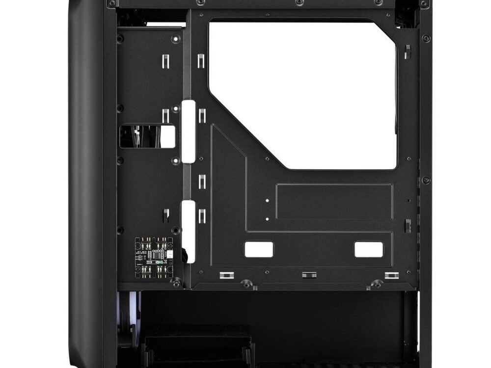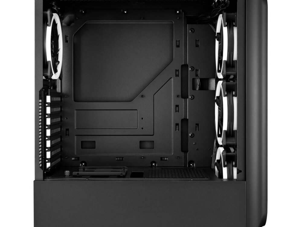 Het zijpaneel van de TK5M RGB is gemaakt van getemperd glas en biedt een optimale presentatie van de geïnstalleerde hardware, terwijl de voedingsunit tunnel een ruimtebesparende locatie biedt voor de voedingseenheid. Voor een voortdurend opgeruimd uiterlijk kunnen kabels uit het zicht worden geleid via de kabeldoorvoeren.