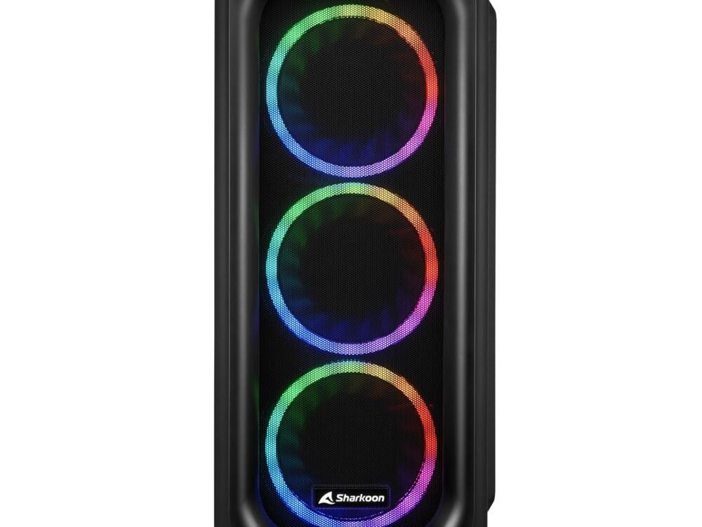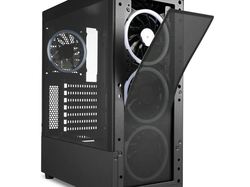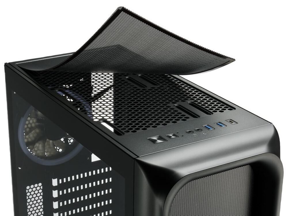 De ATX-behuizing TK5M RGB wint in alle categorieën: Het lucht-doorlatende gaaspaneel aan de voorkant en de vier vooraf geïnstalleerde 120 mm RGB LED-ventilatoren zorgen voor een uitstekende koeling van hardware. Het I/O-paneel is uitgerust met twee USB 3.0 poorten en heeft zelfs een poort voor USB Type-C 3.2 Gen 2. Het zijpaneel van getemperd glas biedt een diep inzicht in het interieur van de behuizing, dat levendig verlicht kan worden met de 4-poorts RGB-controller met 14 selecteerbare verlichtingsmodi.