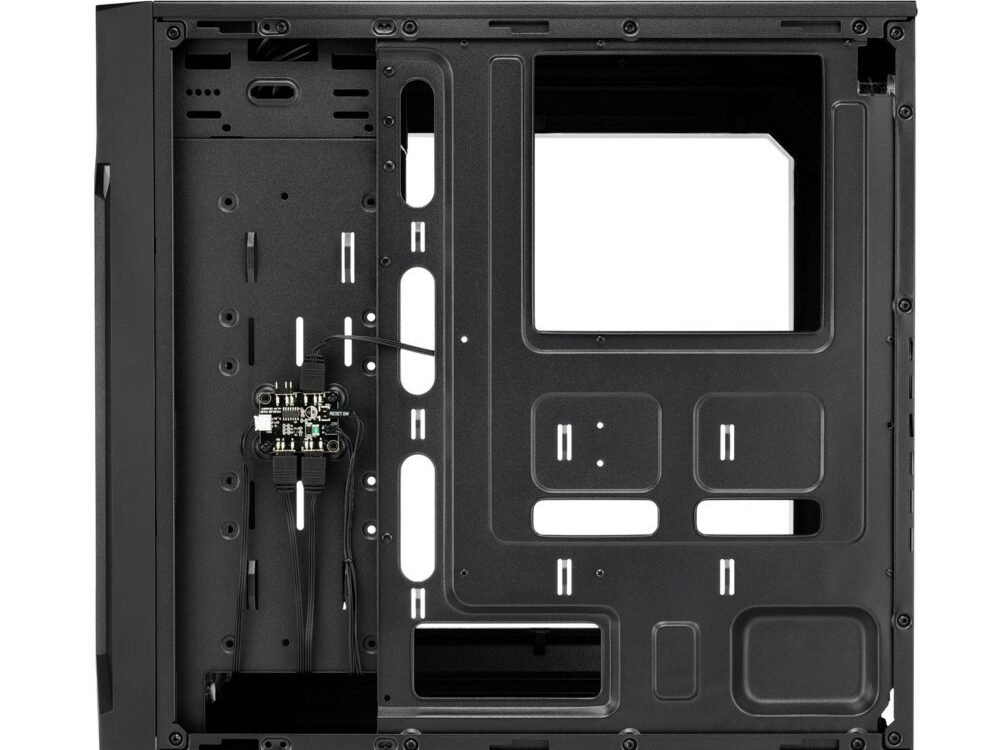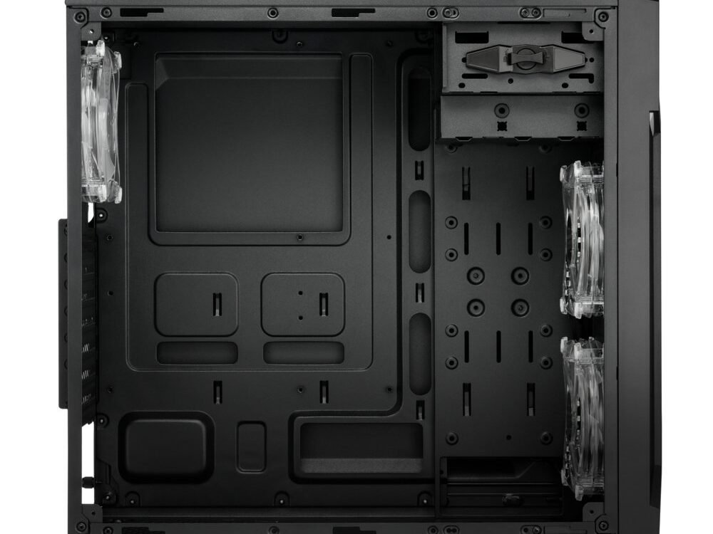 De VG6-W RGB ATX midi tower valt op door zijn retro-futuristisch frontpaneel en het compacte ontwerp welke is ontwikkeld voor de prijsbewuste gamer met luchtgekoelde systemen. Dus, er zijn alvast drie adresseerbare 120 mm RGB LED fans geïnstalleerd, welke niet alleen zorgen voor gekleurde highlights achter de acryl windows van het front- en zijpaneel, maar ook voor een zorgenvrije luchtstroom.Verlichting in 16,8 miljoen kleuren. De VG6-W RGB heeft twee vooraf geïnstalleerde fans in het frontpanneel en één fan op de achterkant, allemaal met adresseerbare RGB leds. Deze kunnen via het moederbord met adresseerbare led headers (pin configuratie 5V-D-coded-G of 5V-D-G worden geregeld. Als het moederbord deze header niet heeft, is er ook een handmatige controle optie aanwezig. Hiermee beschik je over veertien verlichting effecten welke je kan selecteren via de reset knop van de behuizing.Retro-futuristische eye-catcher. Het frontpaneel van de VG6-W RGB met het grote acryl window geeft de behuizing een unieke retro-futuristische afwerking welke gamers zal aanspreken. De led ‘ogen’ boven het frontpaneel geven de behuizing een sterk expressief uiterlijk, en daaronder laat het gehoekte acryl window de voor geïnstalleerde fans op hun best zien.Hardware in zicht. De VG6-W RGB is uitgerust met een groot acryl window voor het tonen van de geïnstalleerde hardware. De window is niet enkel hiervoor geschikt, maar ook voor het tonen van showy interne aanpassingen en verlichte componenten.Compact behuizing ontwerp. De behuizing is zo compact als mogelijk gehouden zonder concessies te maken met betrekking tot het plaatsen van hardware. Er is plaats voor vier SSDs en tot drie harde schijven, en een optische drive. Met het ontwerpen hebben we onnodige extra’s weglaten.Tot ziens stof. Om ervoor te zorgen dat de geïnstalleerde hardware optimaal wordt beschermt, beschikt de VG6-W RGB over verwijderbare en dus gemakkelijk te reinigen stoffilters op de luchtinlaatzones. Indien gewenst kan het filter voor de voorste fans worden verwijderd om de sfeer van de verlichting te veranderen.