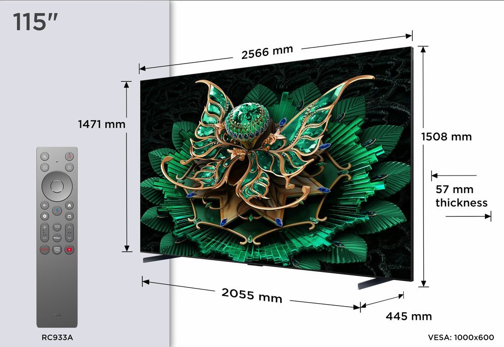 Qua design past deze tv perfect in een moderne woonkamer dankzij de slanke bezel en het minimalistische frame dat de focus volledig op het enorme 115-inch scherm houdt. Of je hem nu op een meubel plaatst of via een VESA-1000 × 600 mm-bevestiging aan de muur hangt, de TCL 115C7K combineert geavanceerde technologie en een stijlvolle uitstraling. Door de combinatie van indrukwekkende beeldtechnologie, krachtige smart-functionaliteit en uitgebreide connectiviteit is deze televisie een uitstekende keuze voor iedereen die een grote, complete entertainmentoplossing zoekt voor film, sport, gaming en streaming.