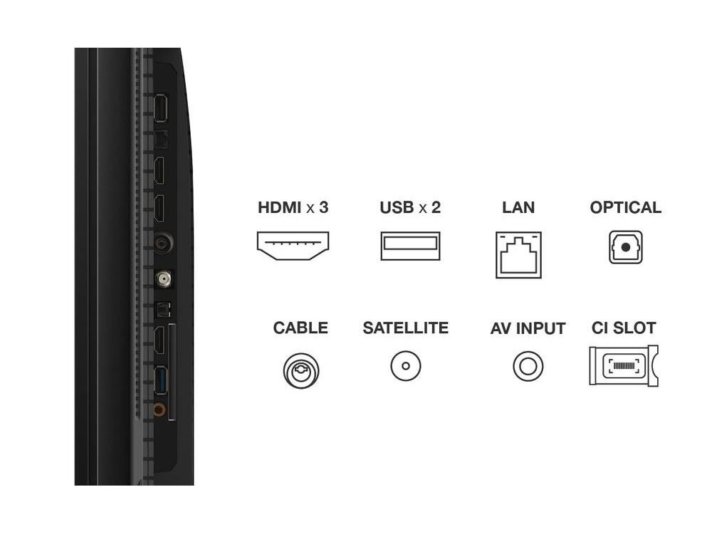 De TCL 43C655 is verder voorzien van alles wat je nodig hebt. Er zijn drie HDMI-poorten, waarvan één HDMI 2.1 voor optimale beeldkwaliteit bij consoles of mediaboxen. Daarnaast zijn er twee USB-poorten, een netwerkaansluiting, Bluetooth, wifi, digitale optische uitgang en een CI-slot voor je tv-abonnement. Alles sluit je moeiteloos aan.