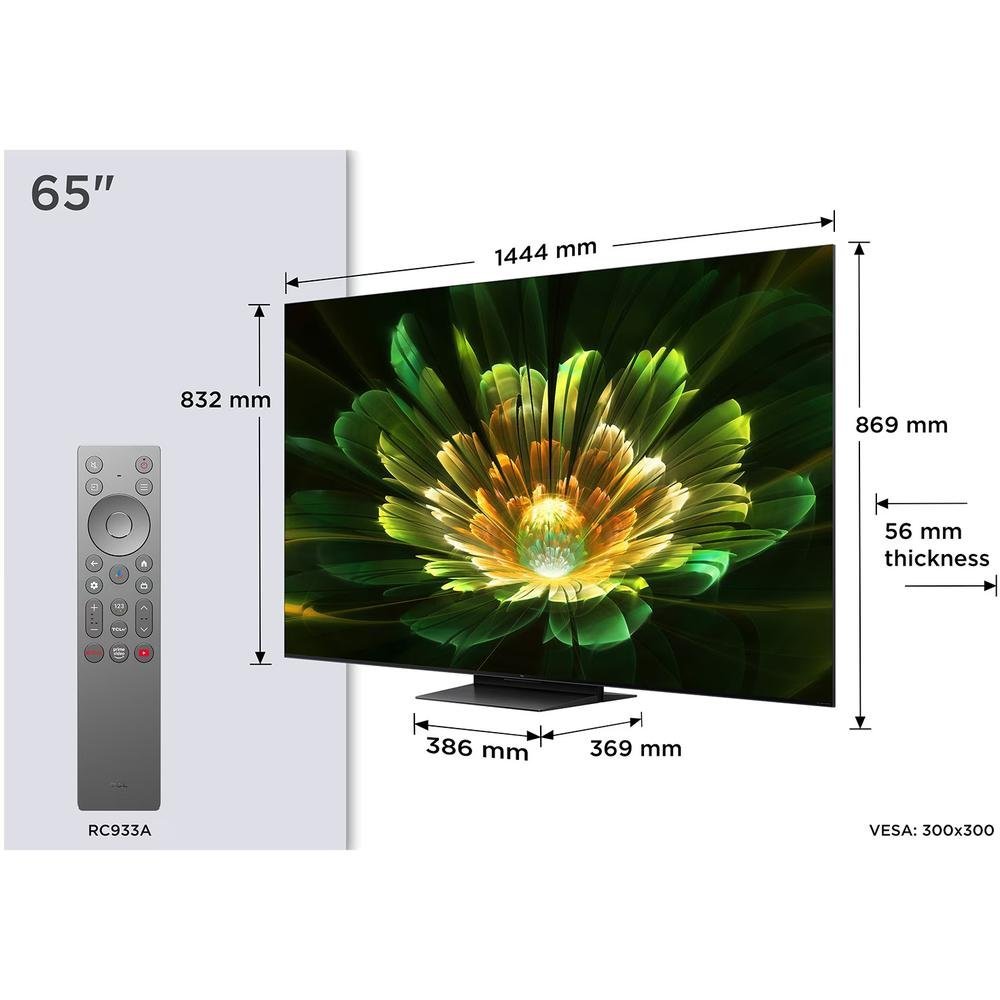 De TCL 65C79K is energiezuinig met een verbruik van circa 100 kWh per 1.000 uur in SDR-modus en 250 kWh per 1.000 uur in HDR-modus. Met zijn combinatie van geavanceerde beeldtechniek, krachtige audioprestaties en uitgebreide smartfuncties is deze tv ideaal voor filmliefhebbers, gamers en iedereen die kwaliteit en stijl waardeert.