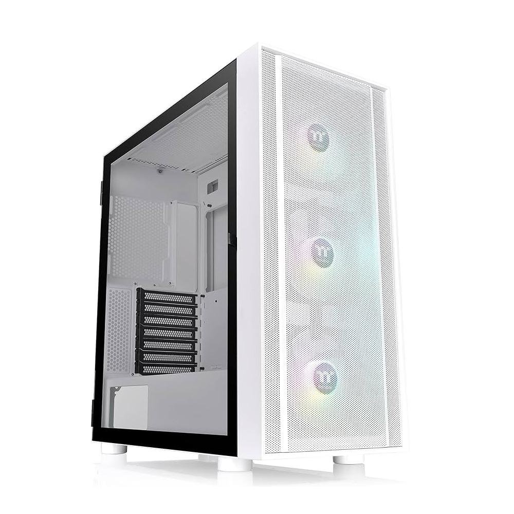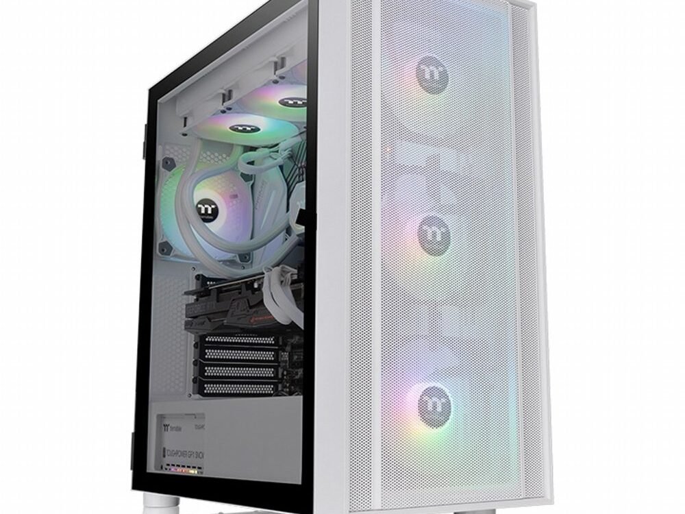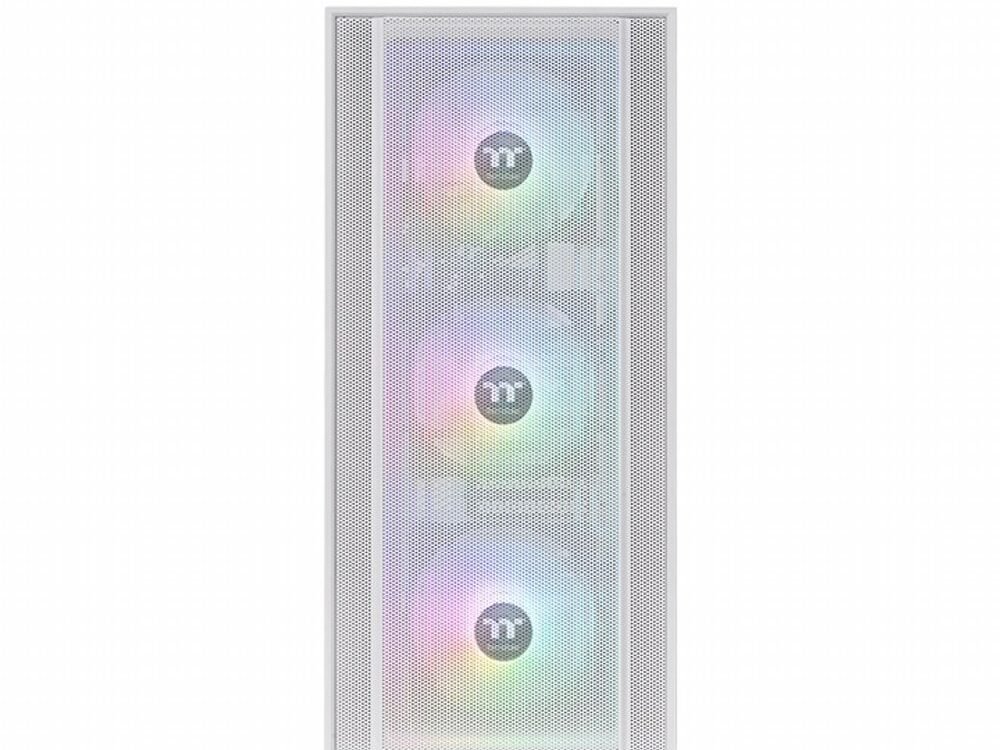 De Thermaltake H570 TG ARGB Snow is een moderne mid tower behuizing die prestaties en uitstraling combineert. Het witte chassis met mesh voorpaneel zorgt voor optimale luchtstroom en efficiënte koeling van je hardware. Standaard zijn er drie 120 millimeter ARGB Lite ventilatoren aan de voorzijde geïnstalleerd die je eenvoudig kunt synchroniseren met populaire moederbordsoftware om een persoonlijk lichteffect te creëren.