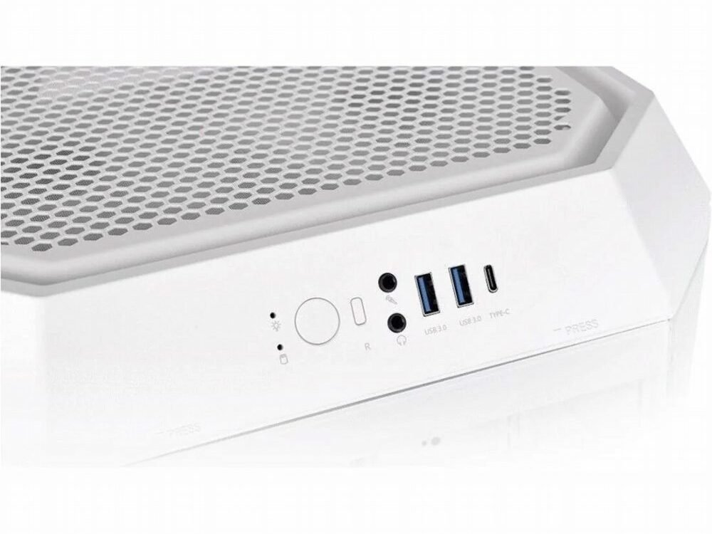 Het frontpaneel beschikt over moderne aansluitingen zoals USB C, meerdere USB 3.0 poorten en audio aansluitingen. Dankzij het modulaire ontwerp en het gebruiksgemak bij montage en onderhoud is de Tower 300 Snow een uitstekende keuze voor iedereen die een compacte maar krachtige pc wil bouwen.