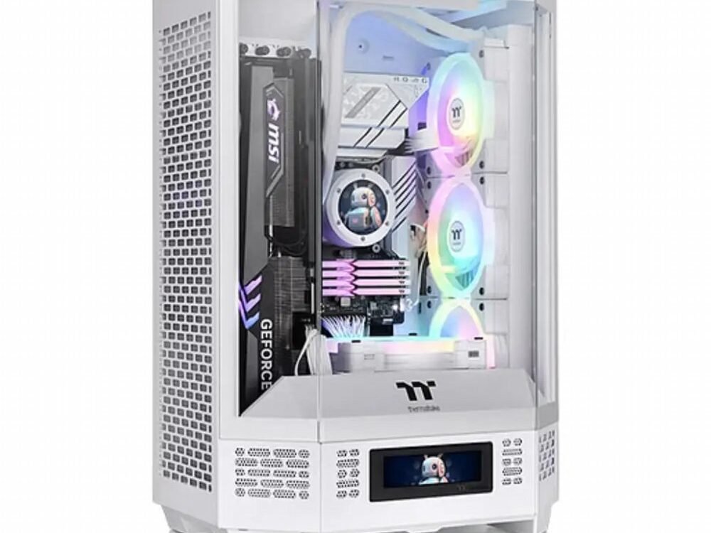 De Thermaltake The Tower 300 Snow is een compacte micro tower behuizing die het kenmerkende verticale ontwerp van de Tower serie voortzet in een moderne prismavorm. De witte afwerking en glazen panelen geven het systeem een frisse en stijlvolle uitstraling.