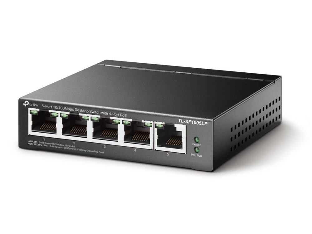 Ontdek de TP-Link TL-SF1005LP, een professionele Fast Ethernet switch met 4 PoE-poorten. Deze switch biedt eenvoudige Plug and Play installatie met PoE-transmissie, ideaal voor diverse toepassingen zoals surveillance in kantoren, slaapzalen en kleine bedrijven.