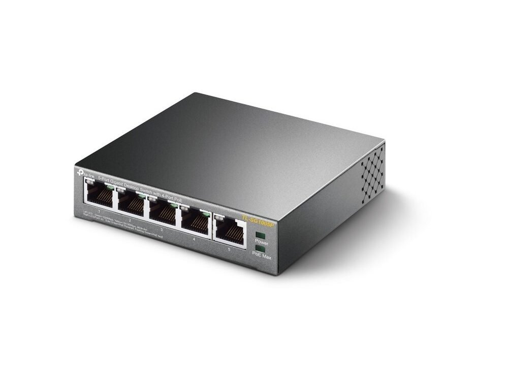 PoE-schakelaars voor jouw ultragemak. 5-poorts Gigabit Desktop Switch met 4-poorts PoE.