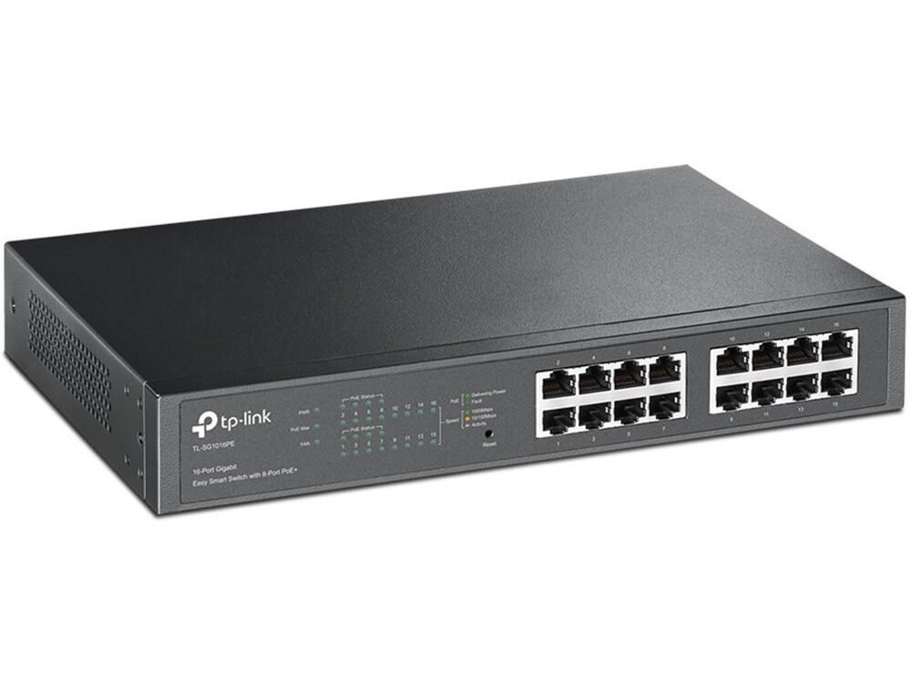 TP-Link TL-SG1016PE | Managed Smart Switch | 16 Poorten | Gigabit Ethernet (10/100/1000 Mbps) | PoE+ (150W) | VLAN/QoS | Webbeheer