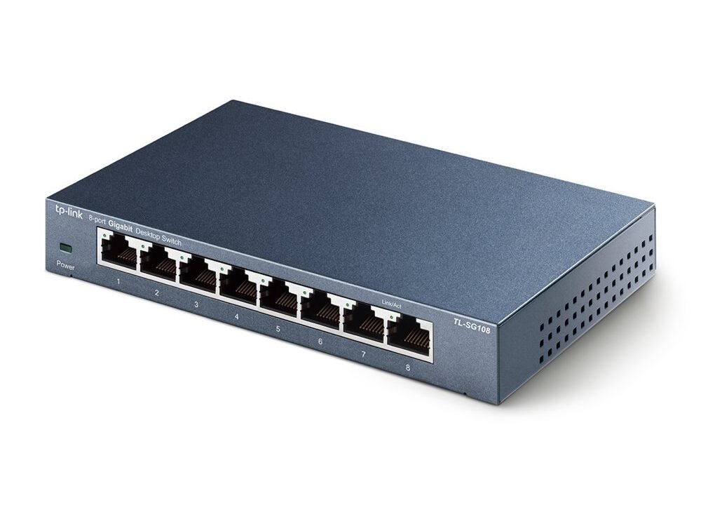 TP-LINK TL-SG108. Switch type: Unmanaged. Type basis-switching RJ-45 Ethernet-poorten: Gigabit Ethernet (10/100/1000), Aantal basis-switching RJ-45 Ethernet-poorten: 8. Full duplex. MAC-adrestabel: 4000 entries. Netwerkstandaard: IEEE 802.3,IEEE 802.3ab,IEEE 802.3x. DC voltage input: 9 V. Netstekker: DC-in ingang
