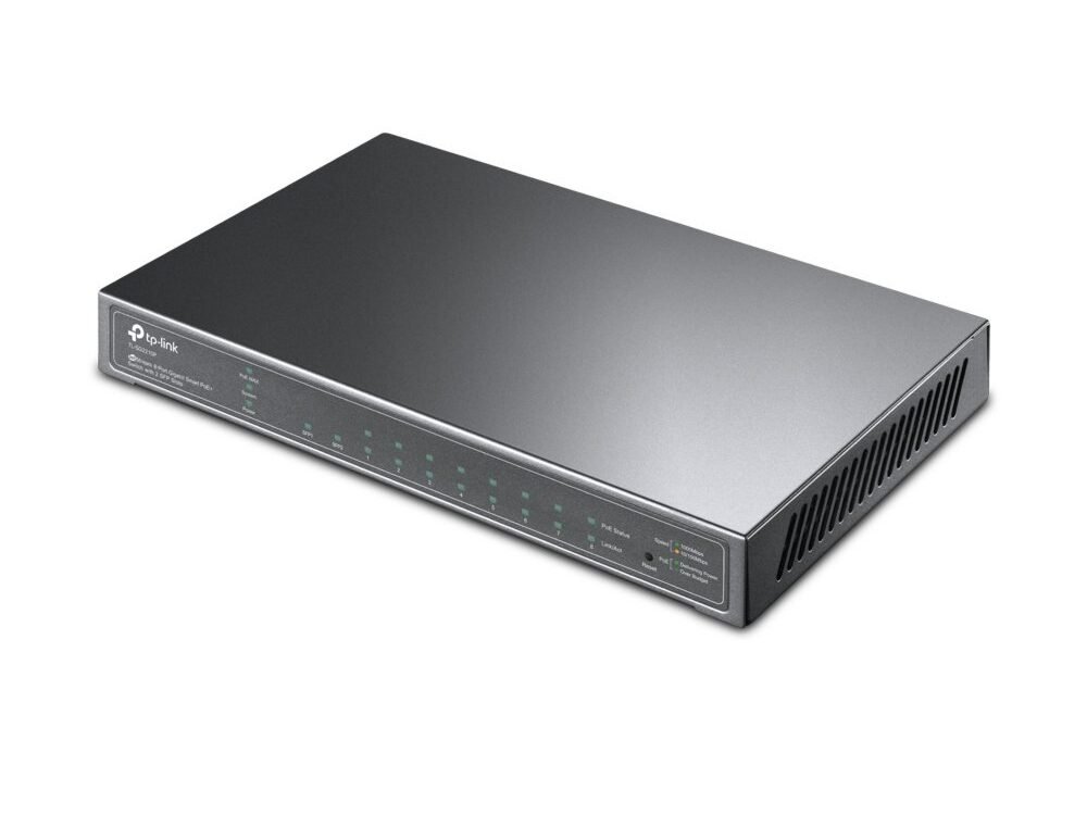 TP-LINK Gigabit Smart Switch TL-SG2210P is uitgerust met 8 gigabit RJ45 poorten en 2 SFP slots, alle RJ45 poorten ondersteunen de PoE standaard met een totaal PoE power budget van 53W en nuttige PoE power management functies. De switch biedt hoge prestaties, QoS op bedrijfsniveau, nuttige beveiligingsstrategieën en rijke laag 2 beheersfuncties.